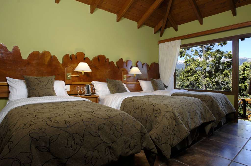 Surrounded by lush mountains and the serenity of Lake Nahuel Huapi in Patagonia, the Charming Luxury Lodge & Private Spa overlooks Playa Bonita, near the city of Bariloche. Each of its earth toned rooms has radiant floor heating and views of the snowcapped Cerro Catedral. The hotel offers a restaurant, heated pool, two outdoor hot tubs, spa, and a beautiful lakeside property.