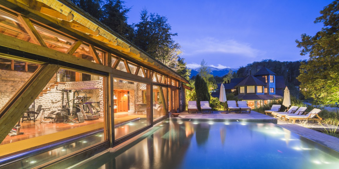 Las Balsas Hotel is a Relais & Chateaux property located on the shore of Nahuel Huapi Lake, just outside Villa la Angostura in Argentine Patagonia. The hotel's 15 rooms feature large windows looking out on the Patagonian landscape, and the hotel offers a restaurant overlooking the lake and a heated indoor/outdoor pool and Jacuzzi with panoramic views.