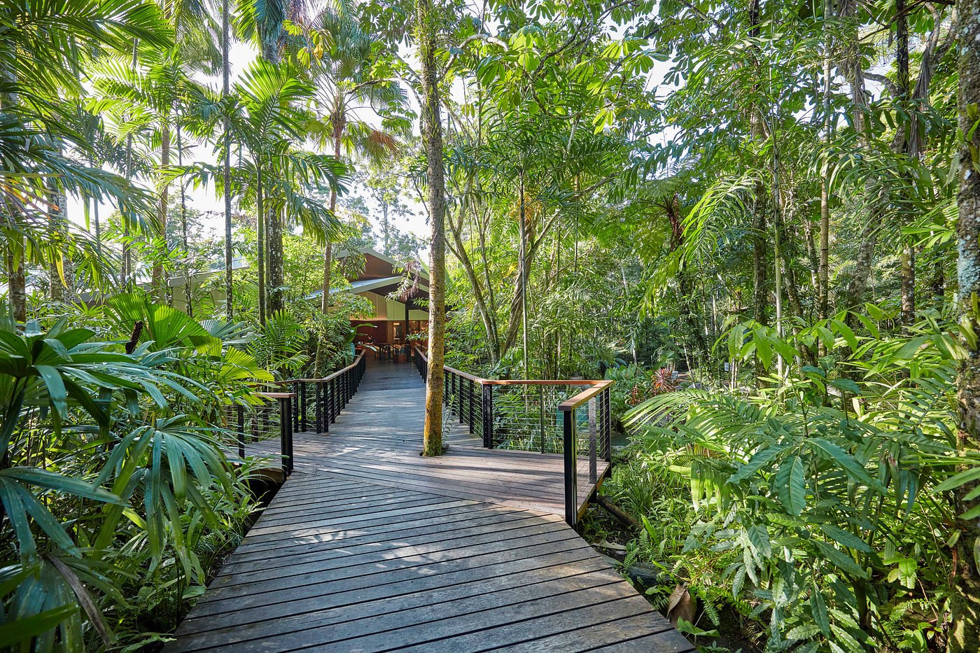 Silky Oaks Lodge is a luxury rainforest retreat located on the edge of the Daintree Rainforest, overlooking the Mossman River near Cairns and Port Douglas. The lodge offers elegant treehouse-style suites with floor-to-ceiling windows, private balconies, and thoughtful touches that blend comfort with nature. Guests can enjoy fine dining with a focus on local produce, a spa offering Indigenous-inspired treatments, and activities such as guided rainforest walks, river kayaking, and wildlife spotting. Surrounded by World Heritage-listed wilderness, Silky Oaks provides a peaceful and immersive escape into tropical north Queensland.