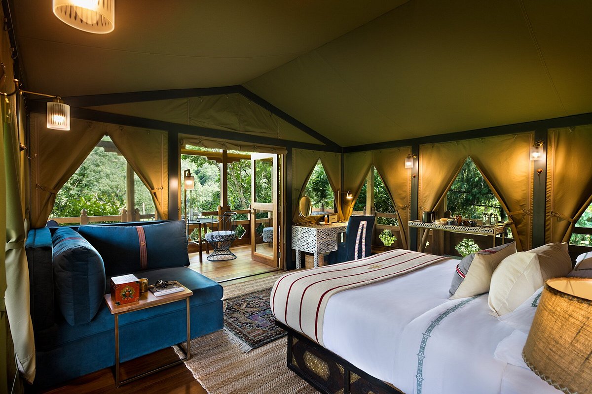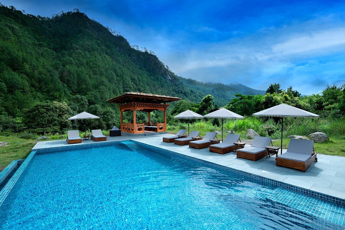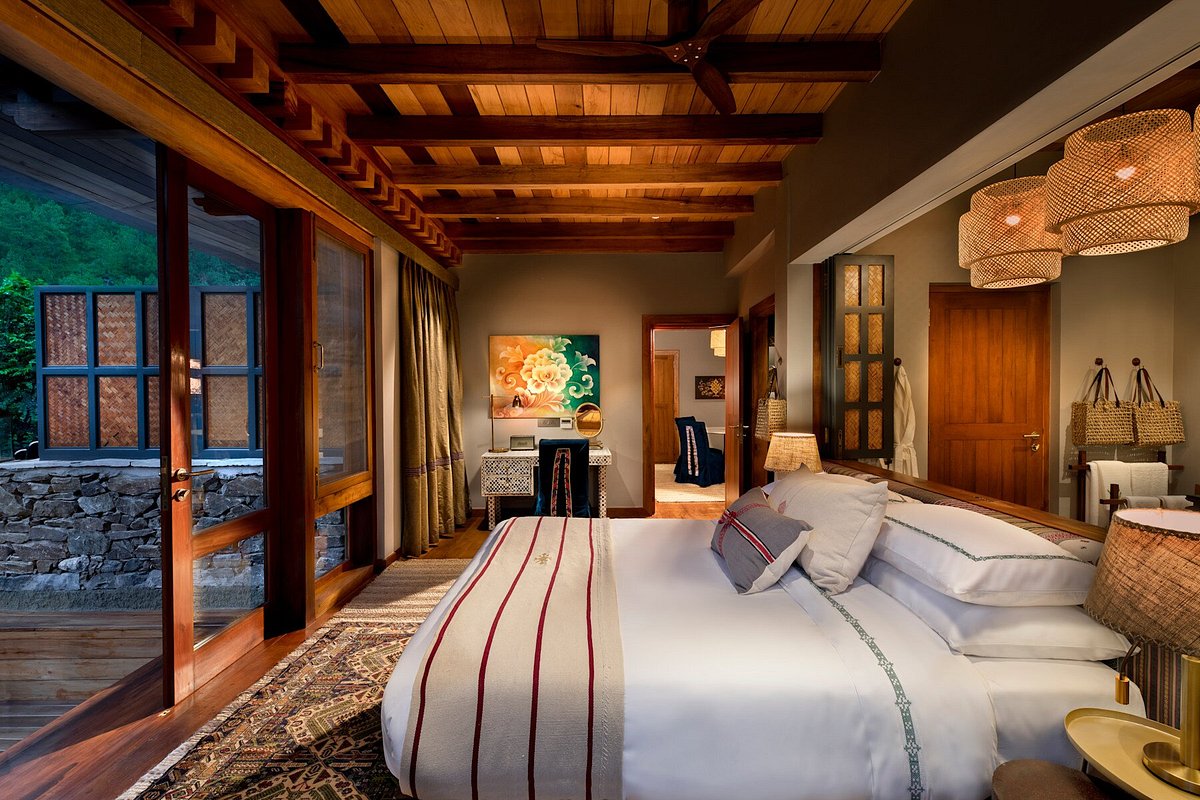 &Beyond Punakha River Lodge is a spectacular lodge, tucked deep in the lush green Punakha Valley and draped on the banks of the Mo Chu River. Each of its luxurious suites boast breathtaking views of the surrounding cascading rice paddies and dense forests, reflecting traditional Bhutanese architecture in perfect harmony with nature. Guests can indulge in yoga and meditation classes or a traditional Bhutanese hot stone bath, swim in the two heated all-weather swimming pools, take an onsite cooking class, or lounge with a cocktail in the chic outdoor spaces overlooking the surrounding landscapes. This lodge proudly boasts all of the luxuries and amenities that come with the &Beyond reputation.