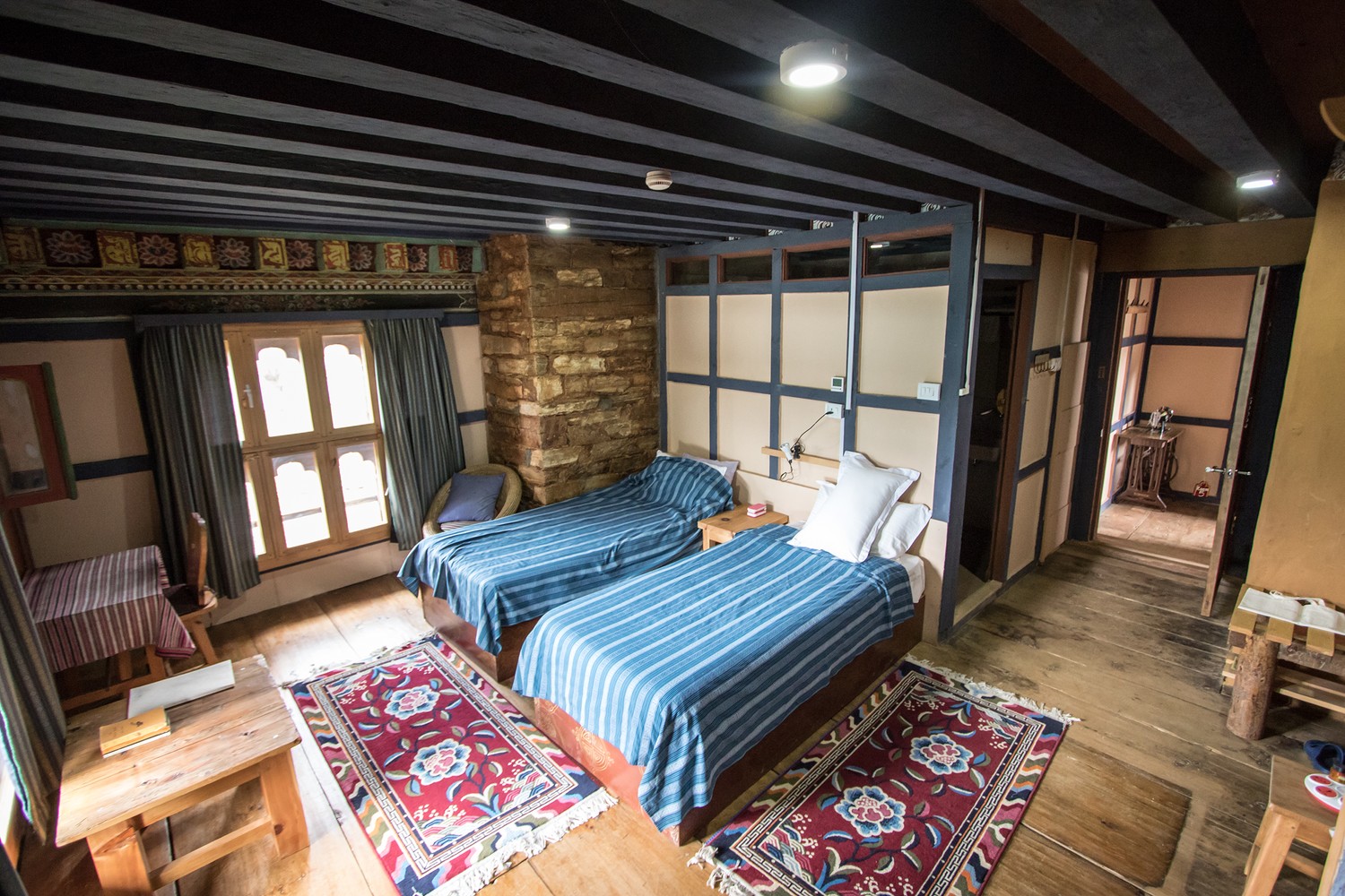 Set within a 16th-century manor, Ogyen Choling Heritage House is a family-run property offering a rare opportunity to stay inside one of Bhutan’s historic noble homes. The guesthouse has a small number of simple, rustic, yet comfortable rooms, featuring traditional woodwork, stone walls, and views over the Tang Valley. Meals are home-cooked and served communally, highlighting local ingredients and Bhutanese recipes. A museum housed in the main complex showcases artifacts and exhibits on Bhutanese history and rural life, adding to the sense of immersion in the country’s heritage.