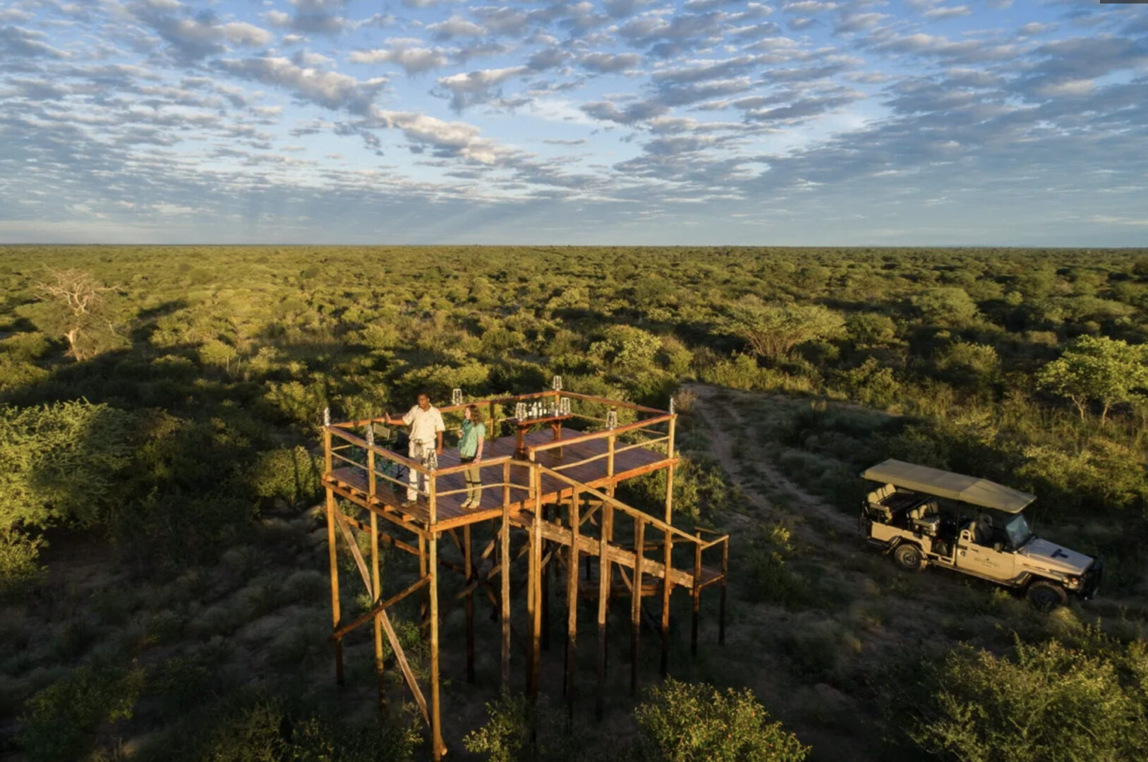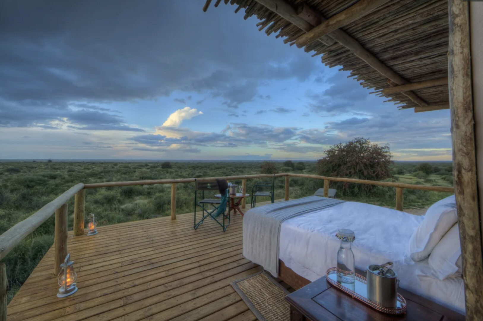 This 5-star lodge is located in a private conservancy hugging the northern edge of the Central Kalahari Game Reserve. Guests are accommodated in seven spacious twin and double-bedded safari tents, each en-suite bathroom has an indoor and outdoor shower, hot and cold running water and flush toilet. Families are accommodated in a two-bedroomed tent, sharing a spacious en-suite bathroom – ideal for families in this child-friendly camp. Dinaka’s tents are well spaced and raised up on wooden decks giving the perfect vantage point over a permanent water hole.
