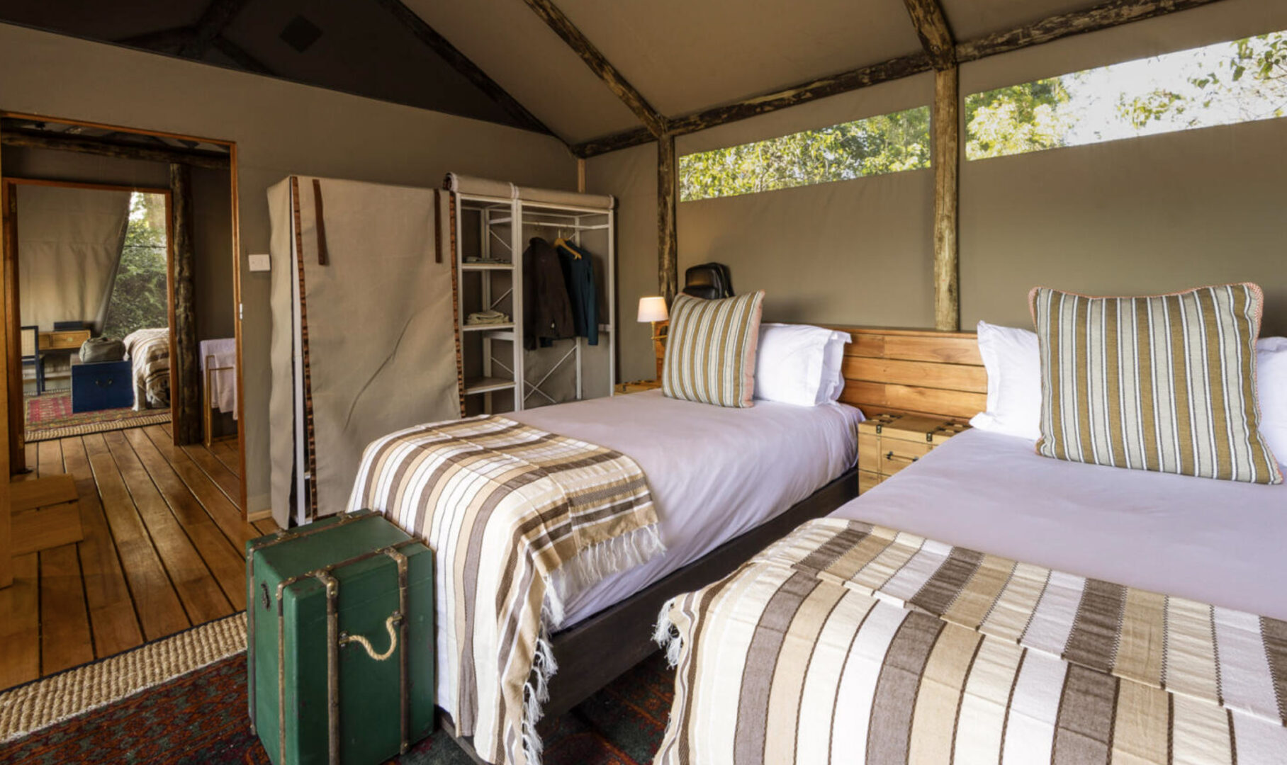 Despite having four tents, Shinde Footsteps accommodates a maximum of six guests at any given time, ensuring an intimate and exclusive safari experience for couples, small groups, or families. Shinde Footsteps’ main area includes a dining tent and lounge that offer captivating views over a permanent hippo pool.