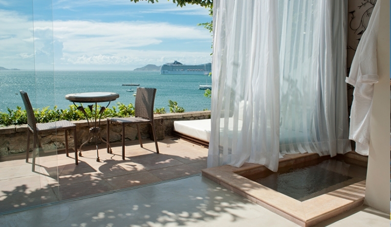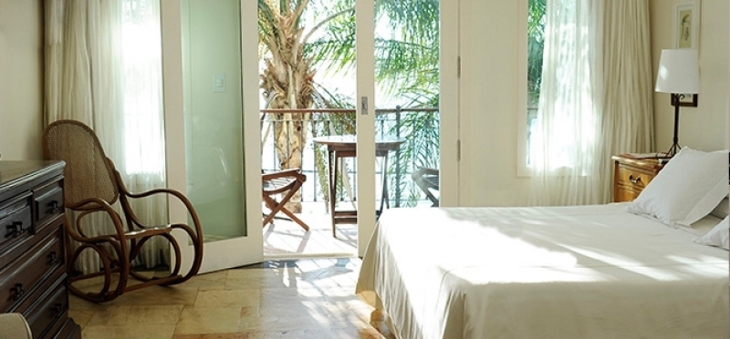 Casas Brancas sits five minutes from the center of Buzios, a cove-filled peninsula with 26 different beaches. Overlooking the bay, its 32 terraced rooms, framed with billowy white drapes and distinctive furnishings, offer a chic Mediterranean ambiance. Its alfresco restaurant offers lovely views of the water.