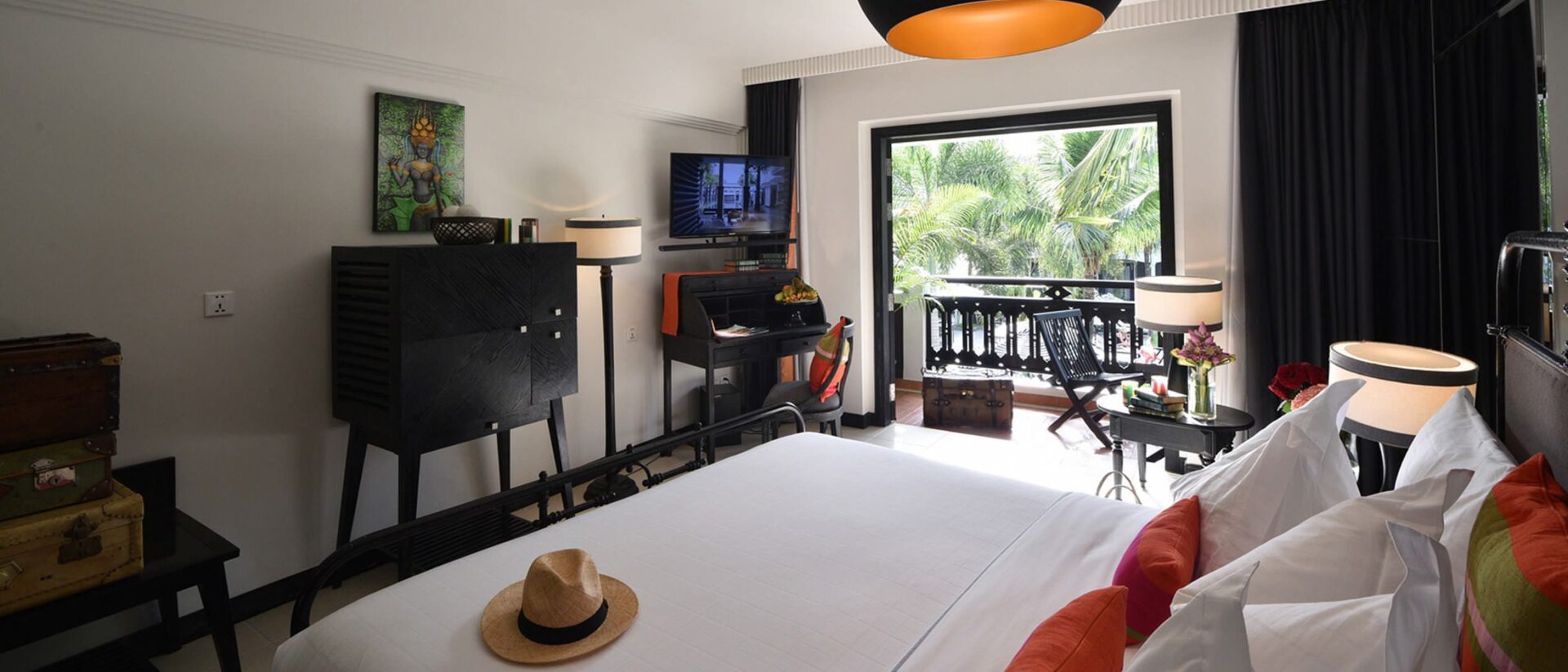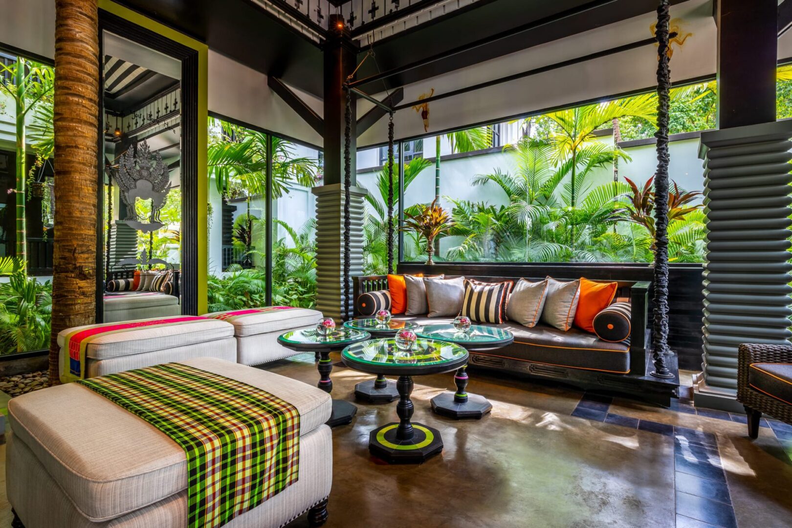 Shinta Mani is a boutique resort with 66 rooms and suites, set within lush gardens and a fabulously striped pool. This modern and hip hotel is located in the leafy French Quarter between the Royal Gardens and only 15 minutes from Angkor Wat.