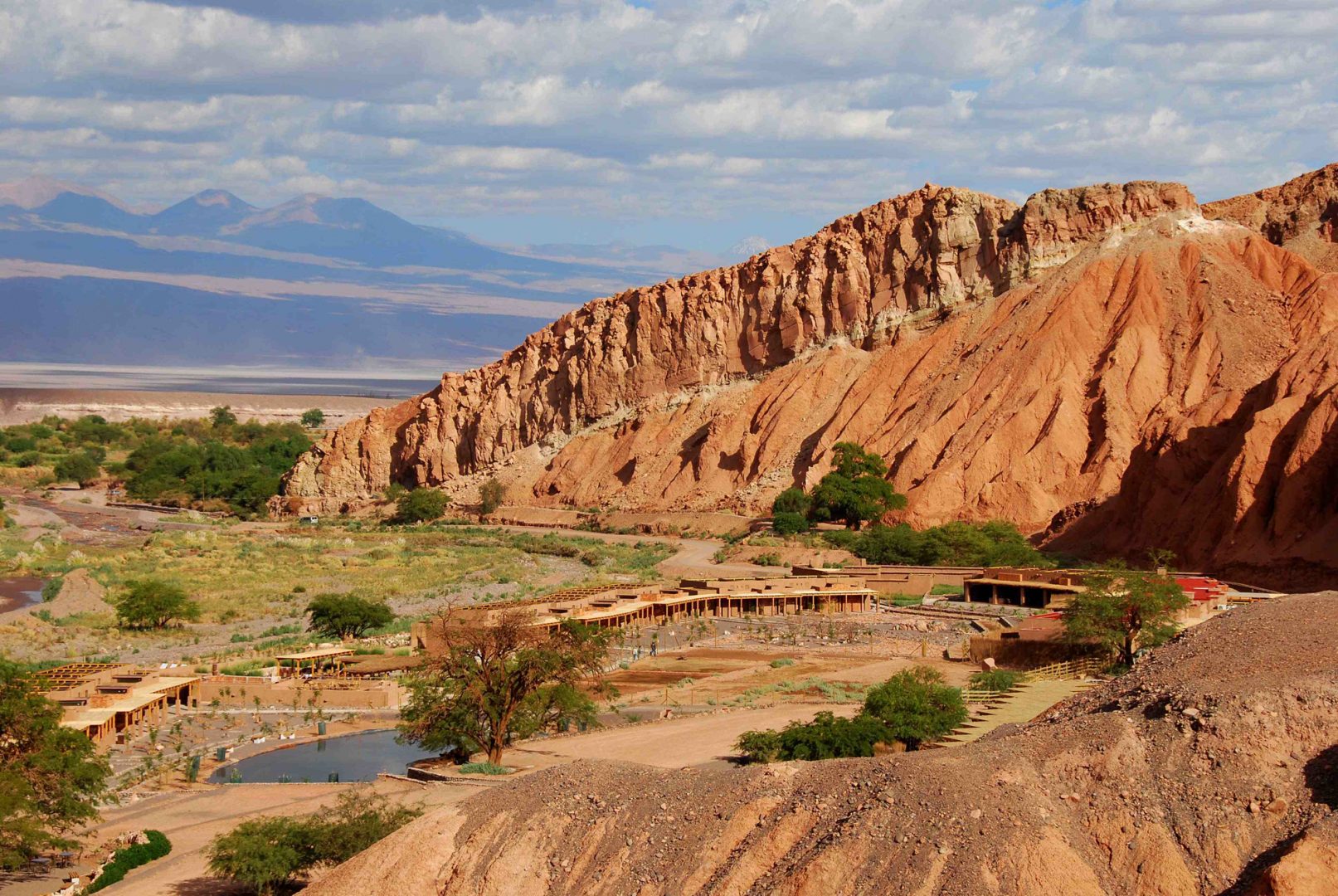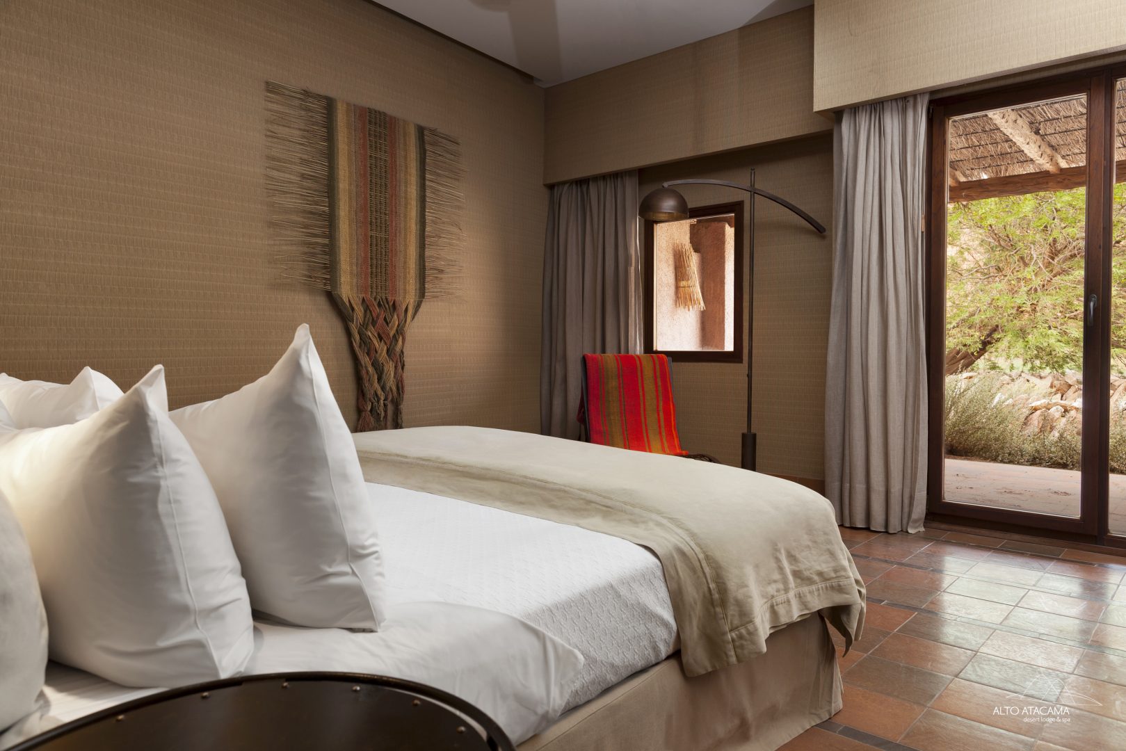 Located in the lush Catarpe Valley of the Salt Mountain Range, just over a mile from the plaza of San Pedro, the Alto Atacama Desert Lodge & Spa is totally enveloped by natural surroundings. Alto Atacama’s design was influenced by local village architecture and conceived to blend seamlessly into its environment and appear as a part of the terracotta-colored ridge that rises behind it. The hotel has a fantastic outdoor space, with a series of pools and a Jacuzzi, an outdoor bar and dining, and plenty of lounging areas. The hotel also features an acclaimed spa. The restaurant offers indoor and outdoor dining and a well-curated selection of Chilean wines. Highly-trained local guides lead excursions to explore the volcanoes, salt flats, lagoons, and other mesmerizing and unique scenery of the Atacama Desert.
