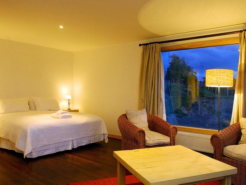 Located in the Aysén region of Chilean Patagonia, Cinco Rios Lodge sits on the bank of the Simpson River and offers sweeping views of the valley and the towering snow-capped Andes mountains. The lodge is spacious yet intimate, housing a maximum of 12 guests at a time in its 6 multi-room suites, each with a private balcony overlooking the Simpson Valley. The lodge has a comfortably furnished living room with a large fireplace, an excellent restaurant with panoramic views, and a cozy bar. The lodge is ideal for multi-day fly-fishing expeditions, and offers a fly shop and a room for fly tying.