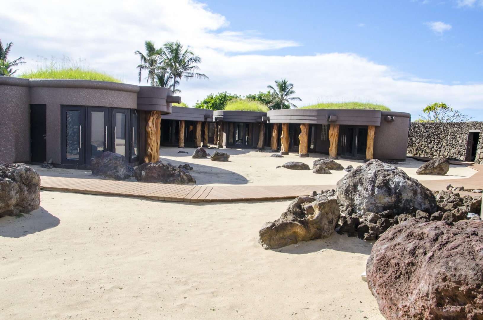 Hangaroa Eco Village & Spa is located on the main coastal road of the town of Hanga Roa. It features great views of the ocean but is also just a short walk to the center of town, allowing guests to experience natural beauty as well as the local community. Built with natural materials such as cypress trunks, clay and volcanic rock, and inspired by the traditional cave-shaped dwellings of Orongo Village, the hotel is characterized by curved spaces and interesting architecture, and features an extensive spa area and several gourmet restaurants.