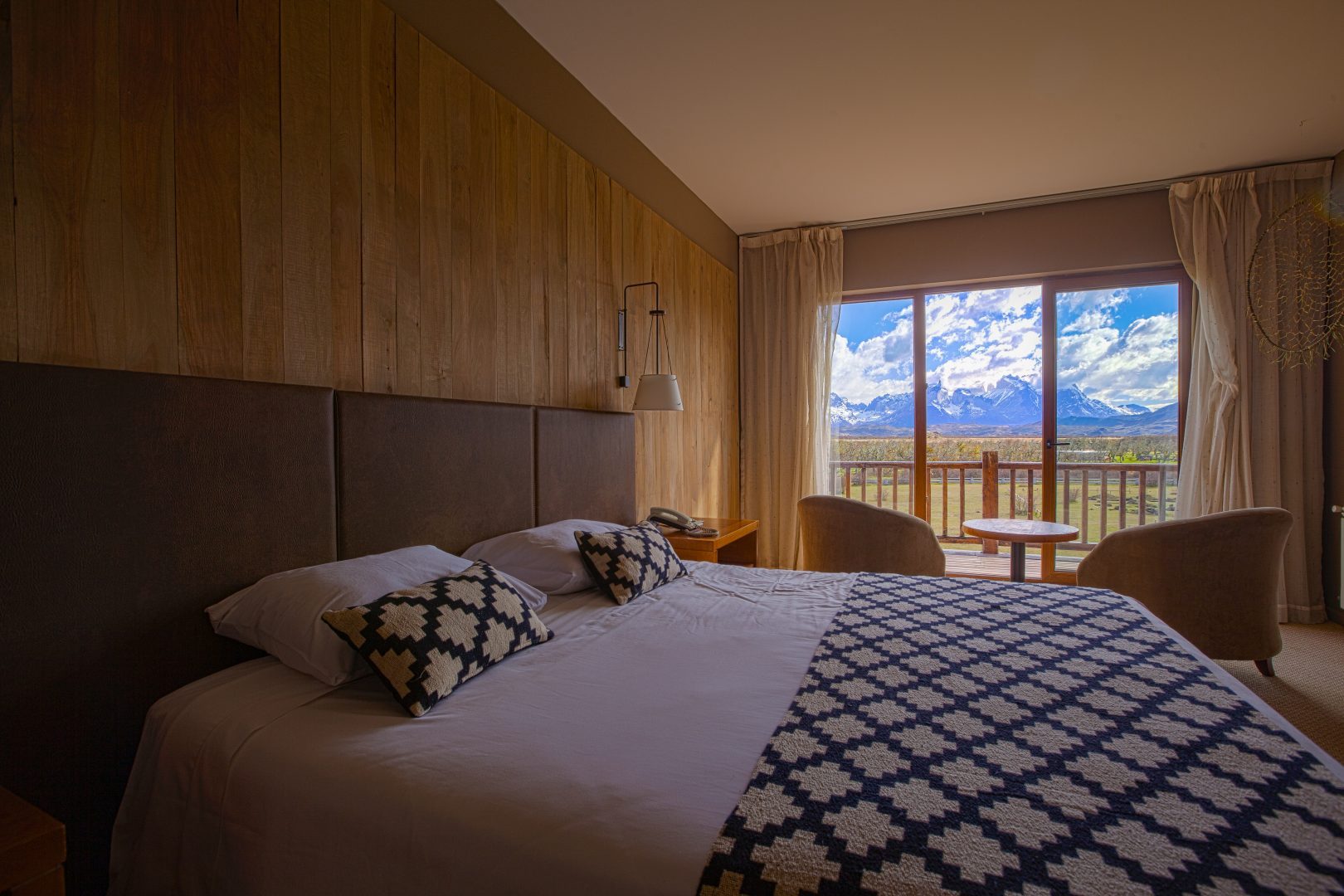 Located at the entrance of Torres del Paine National Park, the Hotel Rio Serrano is large but cozy, combining modern comforts with rustic décor that emphasizes wood and stone. The hotel offers a bar with snack menu, a restaurant featuring local specialties in addition to international dishes, and spectacular views on all sides. The hotel can arrange numerous excursions into the park, and activities include trekking, horseback riding, and vehicle tours.