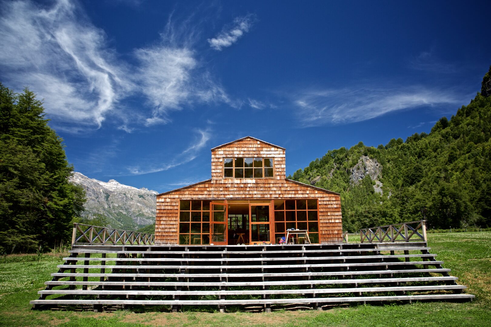 Located on a 250-acre farm, Pata Lodge in Futaleufu, Chile is surrounded by pristine forests and snow-capped peaks. This eco-focused sustainable lodge consists of five rustic-chic cabins, each uniquely designed. The cabins are set within fields and forest, range in size from one to three bedrooms, and all feature warm woodwork, custom furnishings, and organic toiletries. Pata Lodge's facilities include a hot tub, river beaches, a yoga, meditation, and pilates studio, a small movie theater, a greenhouse, and a restaurant featuring ingredients sourced from the lodge's farm.