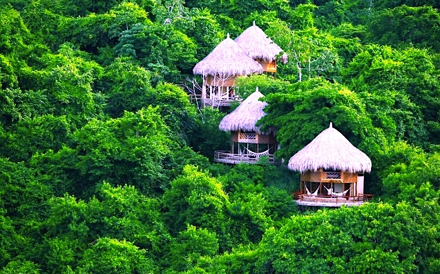Located on the beautiful Cañaveral beach in Tayrona National Park, Ecohabs Tayrona is composed of cozy private bungalows built with native wood and roofed in palm leaves. Each bungalow provides a view of the Caribbean Sea and the green landscape of the park. The hotel has a great location for activities in the park, including bird watching, trekking, exploring the ruins of the Tayrona tribes, or simply taking long walks along the different beaches of the park. The hotel also offers a restaurant, Jacuzzi, and spa.