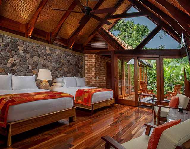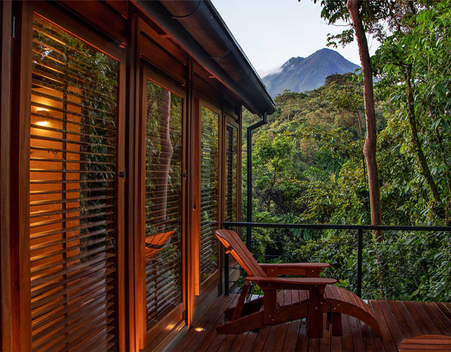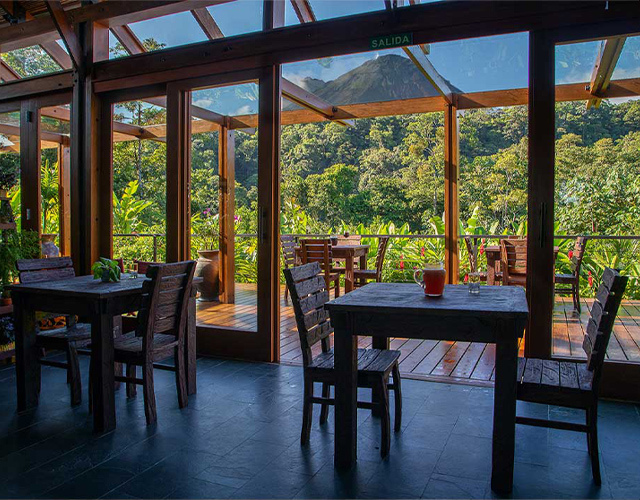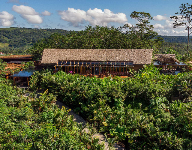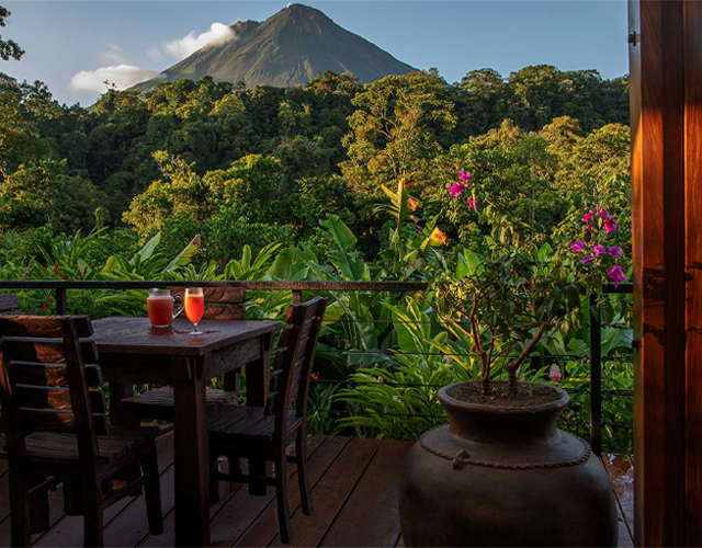 The boutique hotel Amor Arenal is set at the foothills of the Arenal Volcano, by the edge of a virgin forest canyon. From your room, walk right onto the jungle trails or soak in one of the spring fed pools. Enjoy beautiful views of the volcano and the San Carlos Valley as you enjoy organic meals made with local produce.