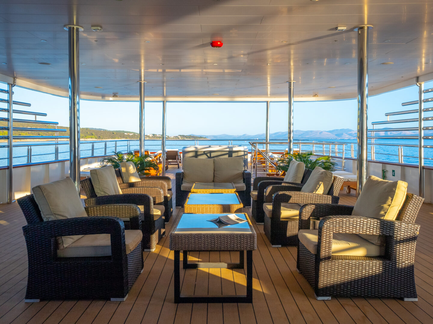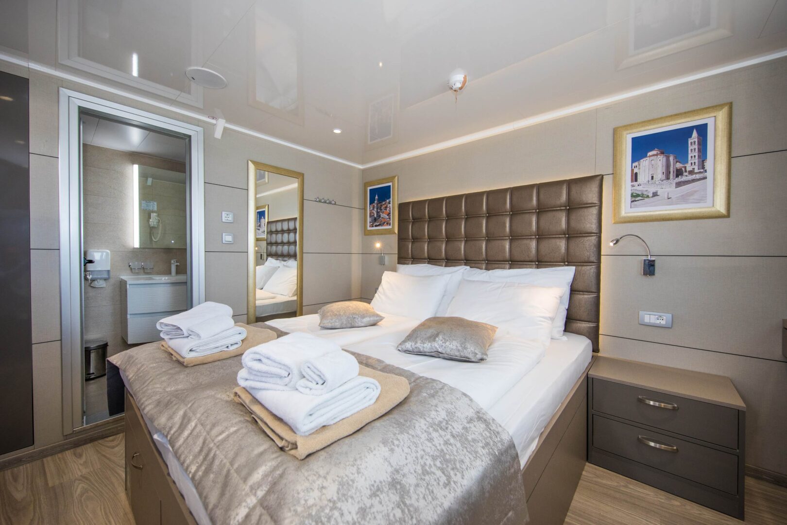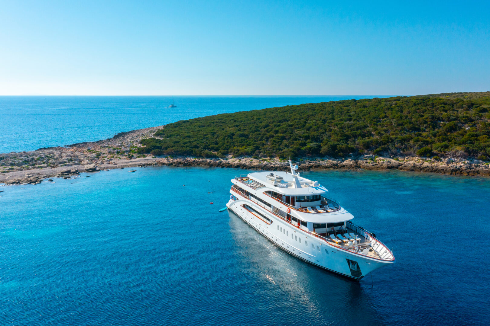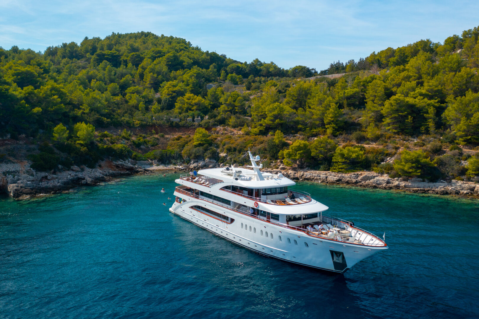 Cruise the Adriatic Sea in comfort on a small modern ship that spans 49 meters and holds only 19 cabins (or fewer). Passengers can enjoy the comfort of air-conditioned cabins, with options for standard cabins featuring portholes or main deck cabins with windows. The ship offers leisure amenities including a swimming platform, a sun deck featuring a jacuzzi, as well as a cozy salon and bar for social gatherings.