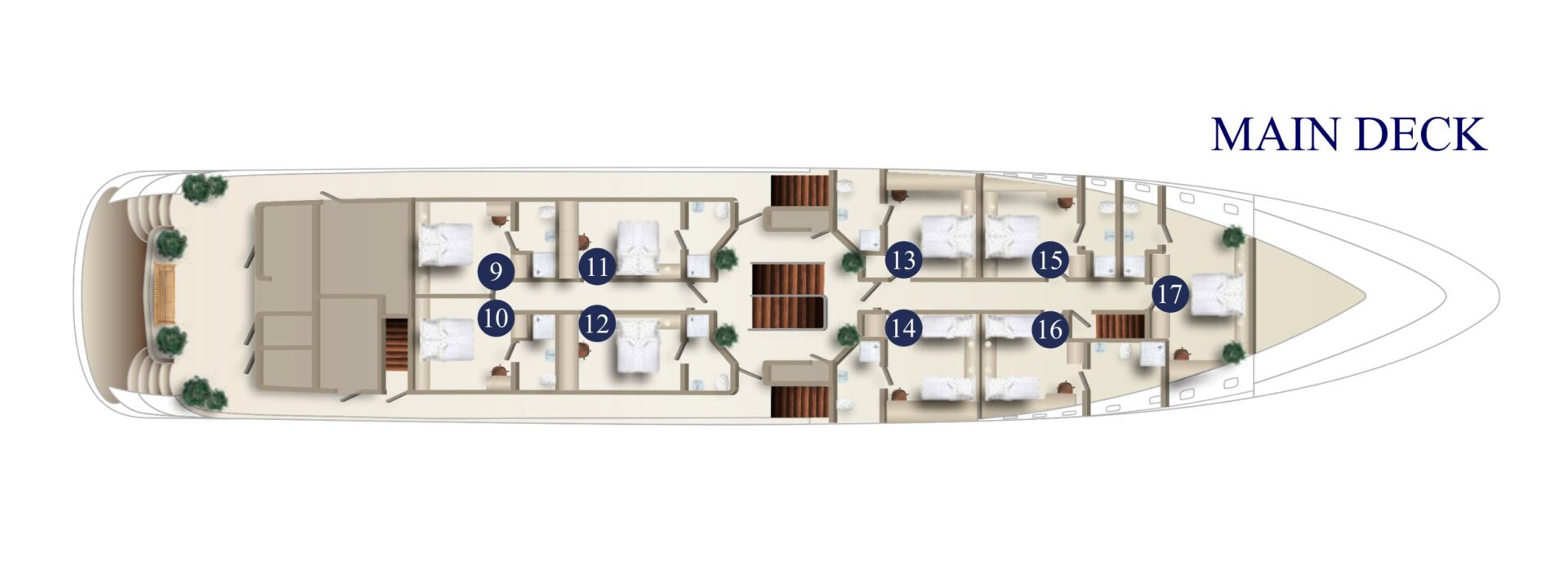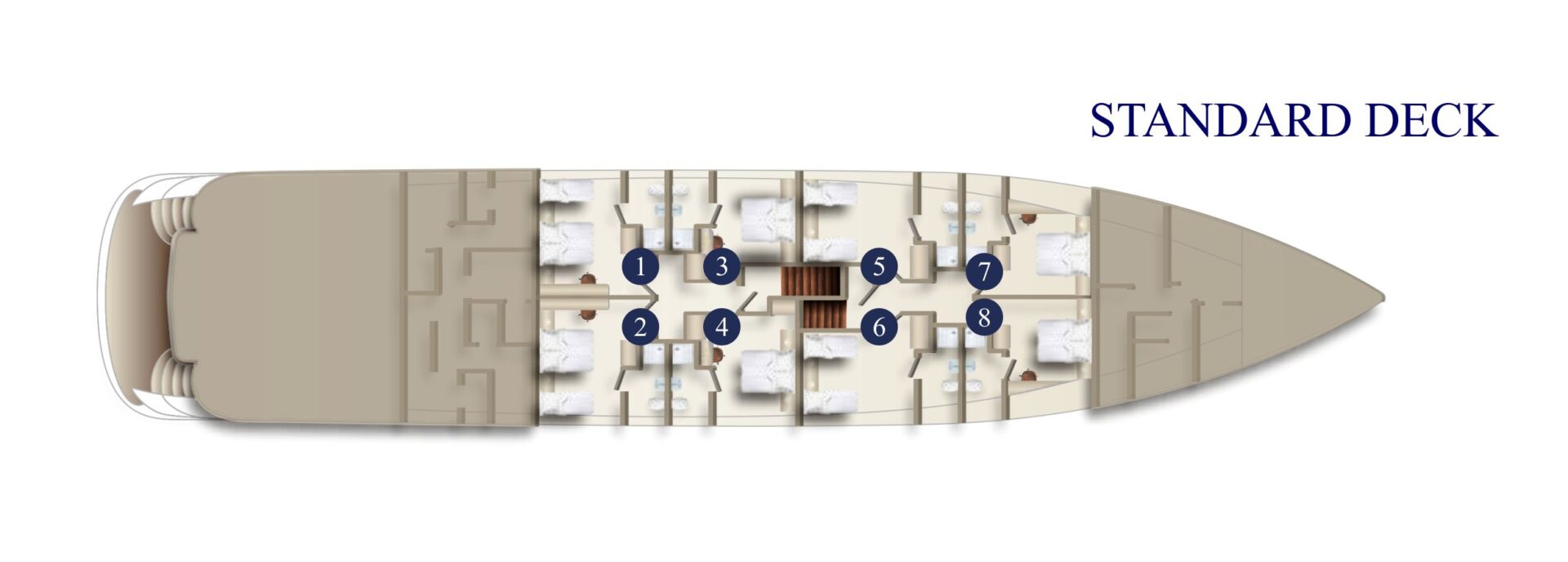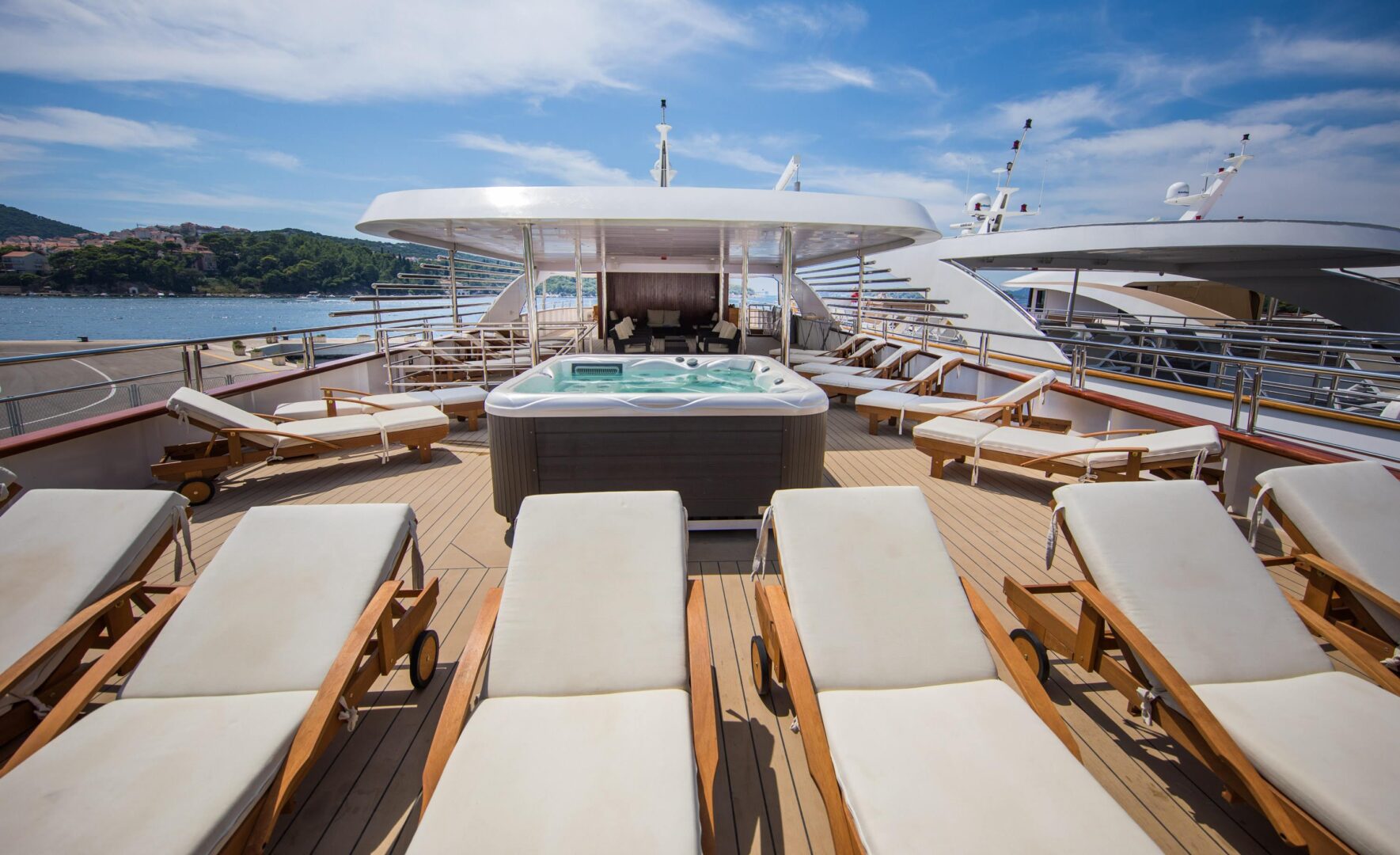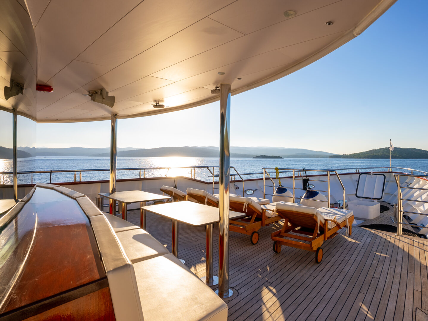 Cruise the Adriatic Sea in comfort on a small modern ship that spans 49 meters and holds only 19 cabins (or fewer). Passengers can enjoy the comfort of air-conditioned cabins, with options for standard cabins featuring portholes or main deck cabins with windows. The ship offers leisure amenities including a swimming platform, a sun deck featuring a jacuzzi, as well as a cozy salon and bar for social gatherings.