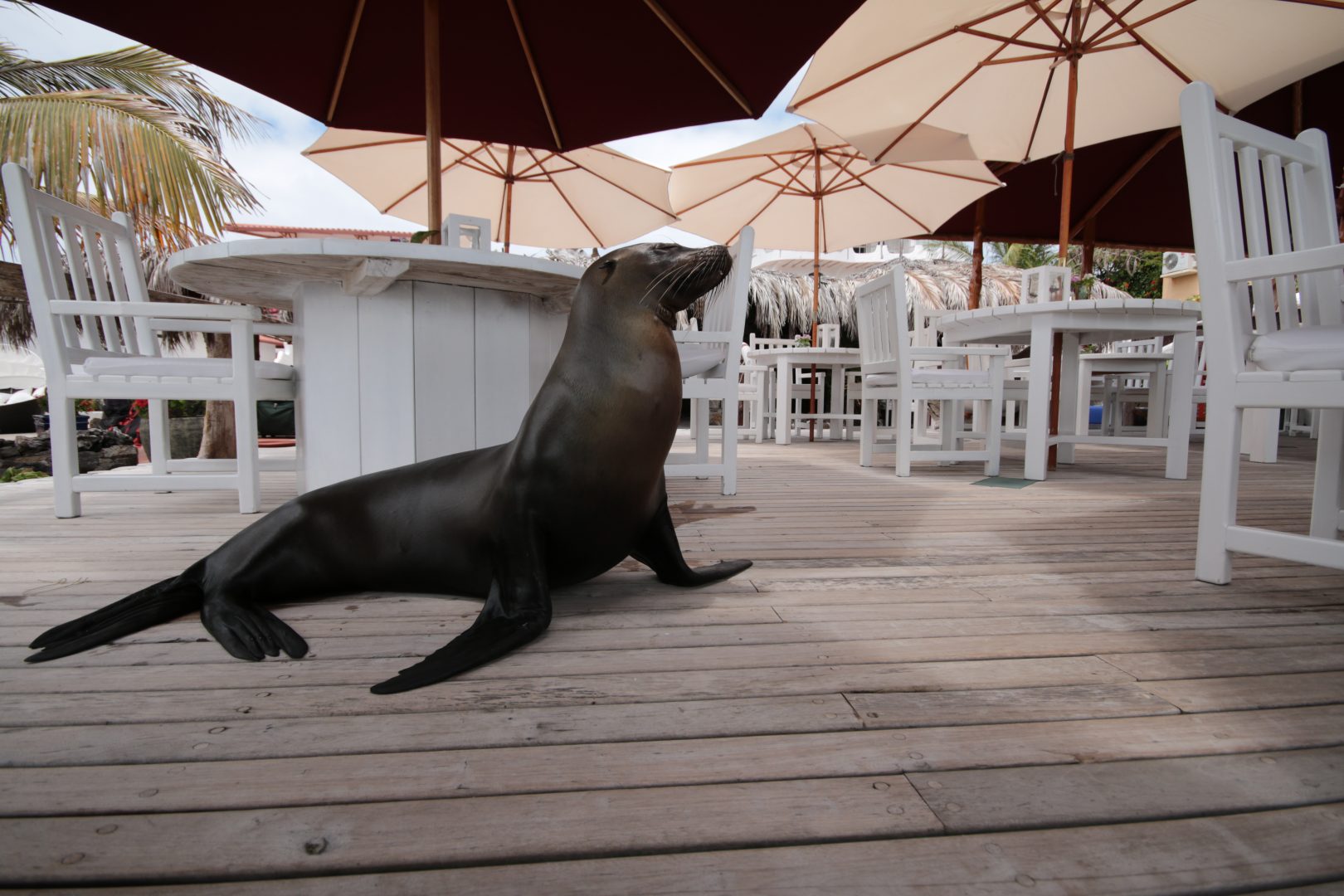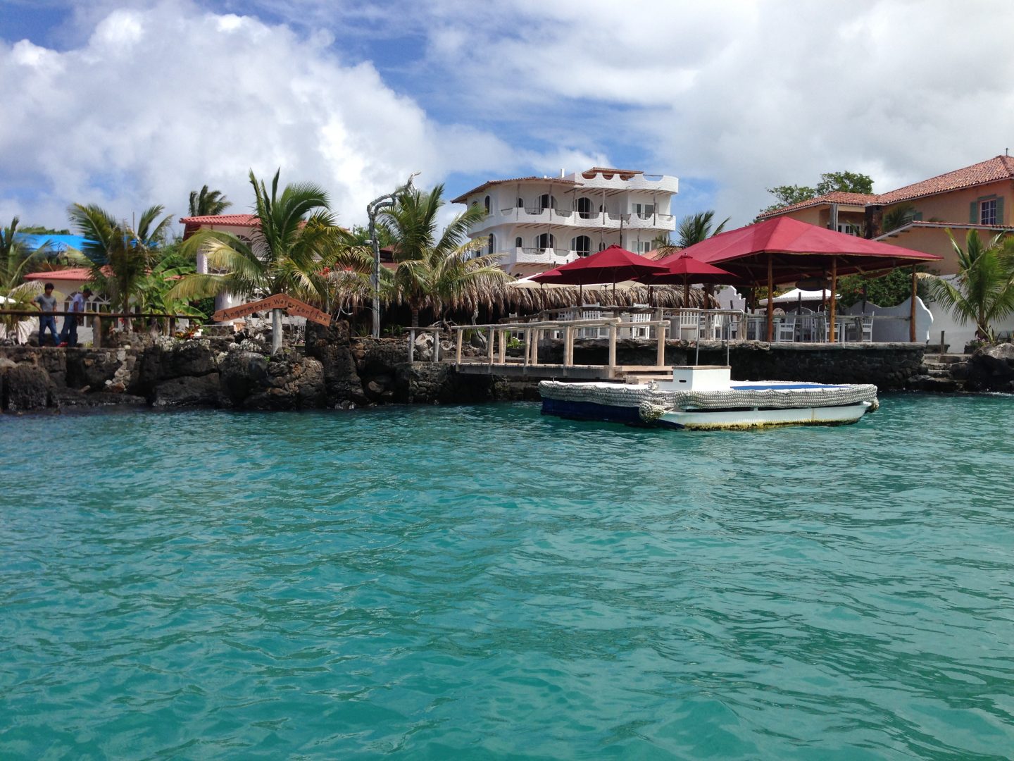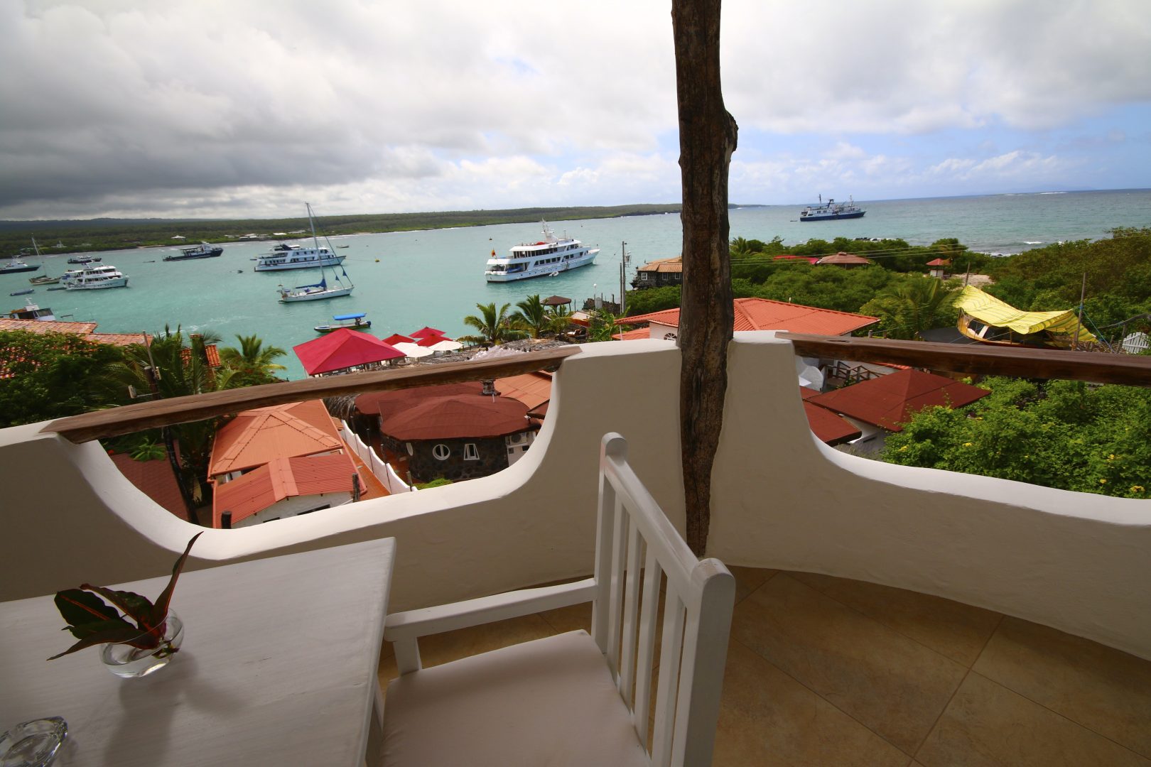 Constructed of local materials such as lava rocks and driftwood, the Angermeyer Waterfront Inn sits on the waterfront in the area known as “Punta Estrada,” just across the bay from Puerto Ayora. This historic hotel was constructed around the Angermeyer Cave, which once housed some of the earliest settlers of the Galapagos. The original Angermeyer Cave forms the Inn’s reception and lounge area, while two other buildings hold 16 rooms with different layouts. The hotel also offers water-side dining with exception views of the bay.