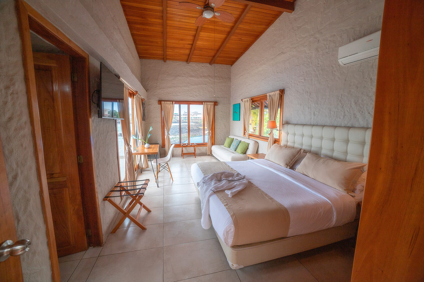 Located on the island of Santa Cruz, Blu Galapagos sits beside Puerto Ayora, the island's main city. The bay of Puerto Ayora is in full view, and guests can explore the complex ecosystem of mangrove forests right outside the front door. Blu Galapagos offers 5 suites, 6 superior rooms, and 12 standard rooms with views of the water or into the diverse mangrove forest. The onsite restaurant serves local dishes.