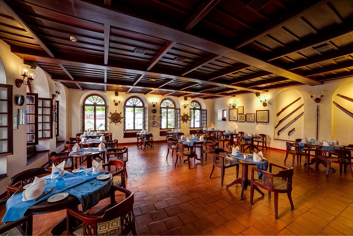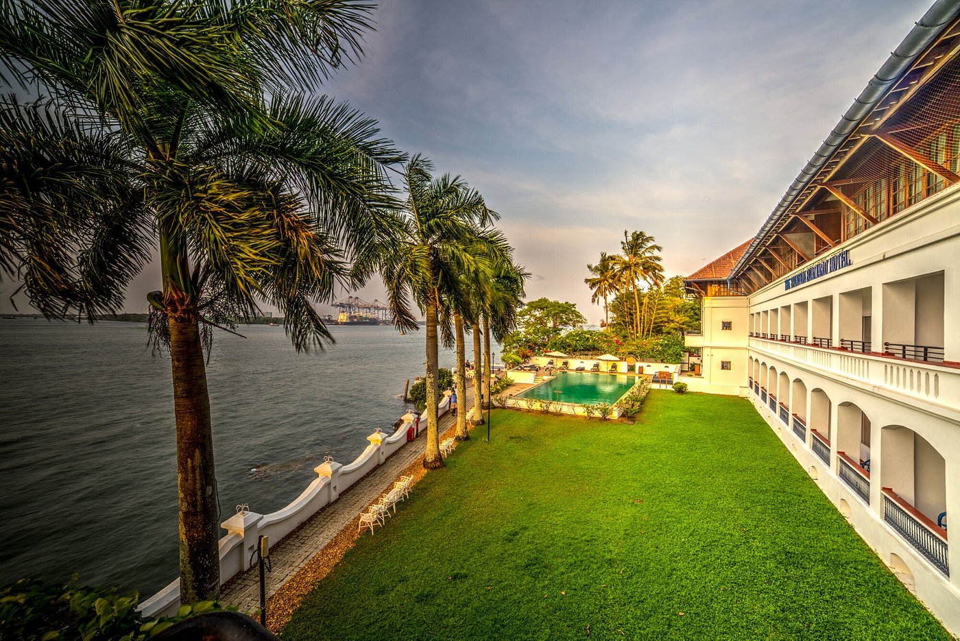 Brunton Boatyard at Fort Kochi is inspired by colonial history. A former shipyard in British times, this historical plot of land that once housed a famous boatyard now has another landmark, the Brunton Boatyard. Brunton Boatyard is a five star hotel whose 22 rooms and interiors reflect an eclectic but tasteful blend of English, Portuguese and Dutch influences, as seen in its high ceilings, hanging fans and a plethora of artifacts and curios from a great mercantile age. Most rooms have a sea view. Airy lounges, manicured lawns, a spacious pool, unmatched harbor views, and varied cuisines are all on offer.