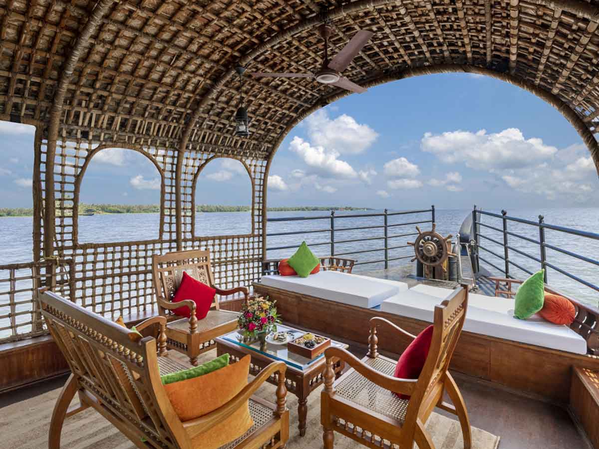 Float in this charming accommodation on the serene waters of the Lake Vembanad, styled in Kerala's traditional houseboats. This houseboat is equipped with modern amenities and luxuries, including personal crew and a chef, air-conditioned bedrooms, use of an on-land pool and fitness center, tea and coffee facilities, and high-end toiletries.