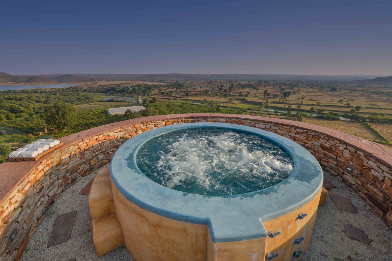 Escape the ordinary and immerse yourself in Rajasthan's regal charm at Ramathra Fort. Perched atop a scenic hill, this 17th-century fort offers stunning views of the Kalisil Lake and the surrounding countryside. Explore the fort's rich history, rumored to be a resting spot for Lord Rama during his epic journey. Choose from beautifully appointed rooms, some featuring traditional Indian furnishings, and all boasting modern amenities. Indulge in delicious regional delicacies prepared with fresh farm produce, or explore the surrounding area on foot or by boat.