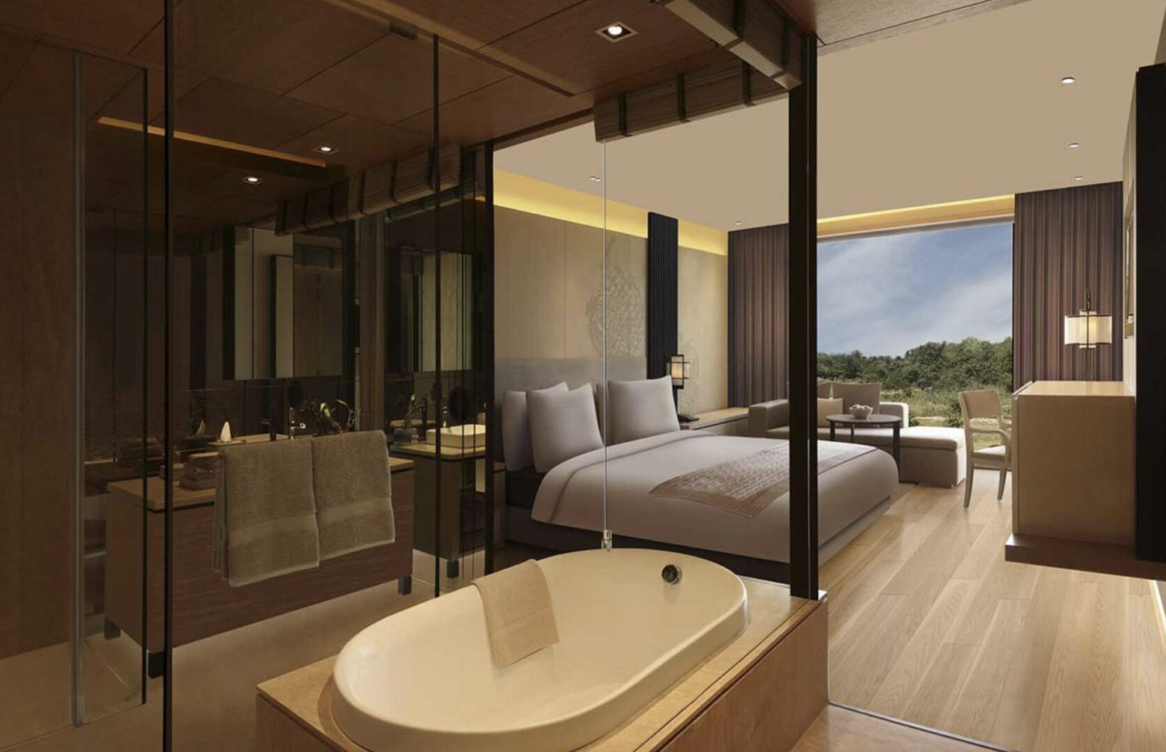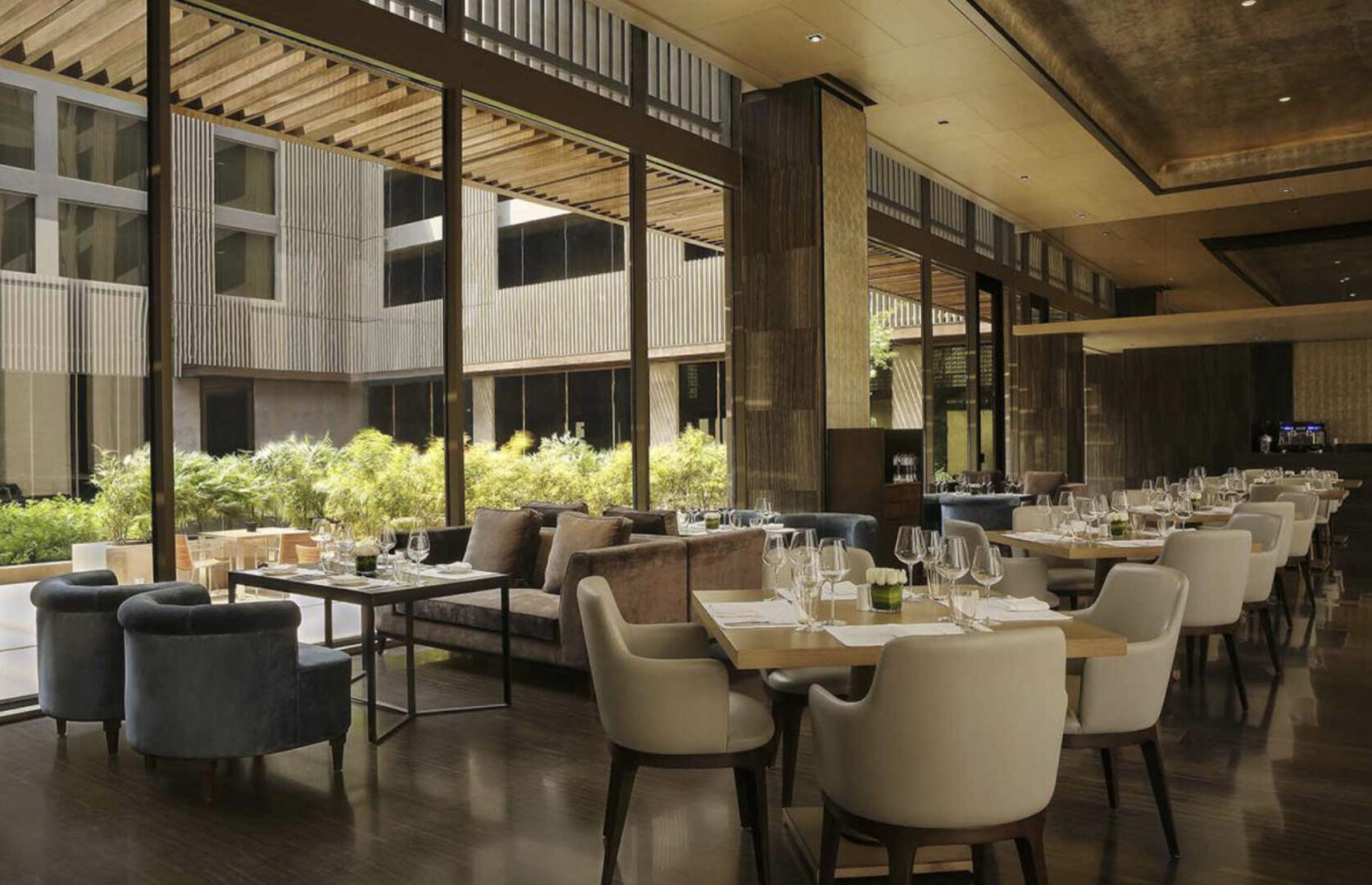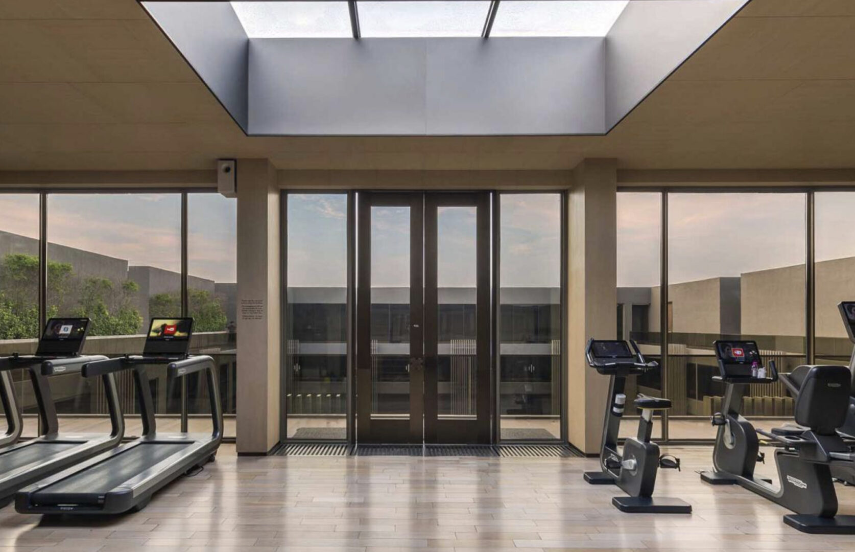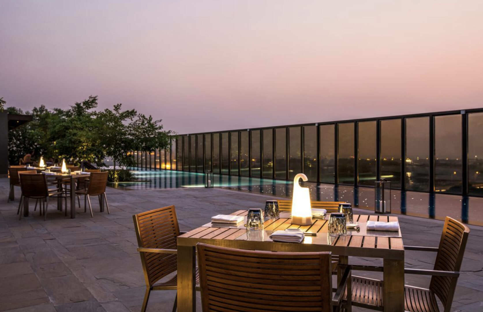 Roseate House New Delhi is a contemporary upscale hotel stationed in the capital’s only hospitality district, Aerocity. Distinguished to be one of the best hotels in Delhi Aerocity, it spreads across 1.6 acres and combines lineage and novelty in its design and services to cater to cosmopolitan guests. This popular 5-star hotel in Delhi Aerocity renders a contrasting respite from the city’s hustle and bustle. Guests can enjoy an on-site coffee shop and patisserie, two restaurants, a spa with grooming services, a theater featuring movies and live performances, a gym, and a rooftop infinity pool.
