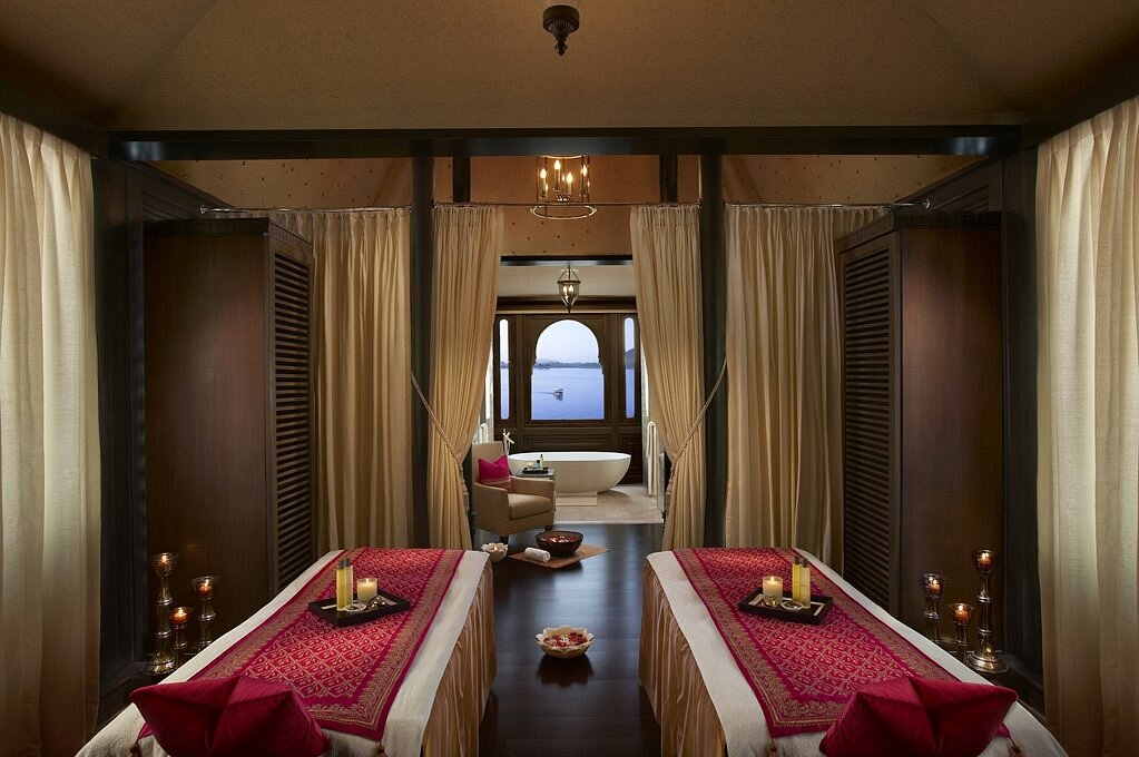 Perched on the banks of the serene Lake Pichola, The Leela Palace Udaipur exemplifies Rajasthani architecture and evokes the grandeur of Udaipur's rich and royal heritage. Its unparalleled opulence is an ode to the Land of the Mewars using traditional artisanal crafts. Decorated with warm shades of golds and reds, the rooms feature local artwork and fine Indian carpets. They come with a flat-screen TV, Wifi, air-conditioning, and other fine amenities. Marble bathrooms have a bathtub and premium toiletries. Surrounded by loungers, the large outdoor pool has an attached hot tub. Alternatively, enjoy quiet moments at the peaceful Library Bar, or having dinner overlooking the spectacular view.