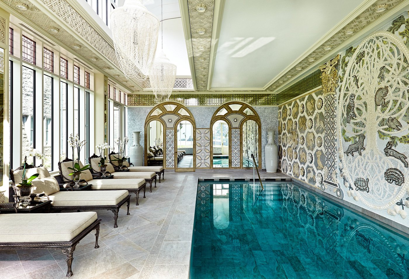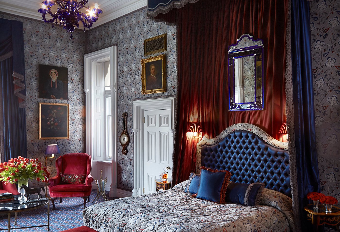 Dating back to the 13th century, Ashford Castle Hotel is one of Ireland’s most renowned castle hotels, set on a 350-acre estate by Lough Corrib. The property has 83 rooms, suites, and a lakeside cottage, all individually designed with antique furnishings, rich fabrics, and modern amenities. Dining options include several restaurants and bars, among them the George V Dining Room, which serves fine Irish cuisine in a grand setting. The castle also features a spa with an indoor pool, a cinema, and elegant public rooms adorned with historic details and period art.