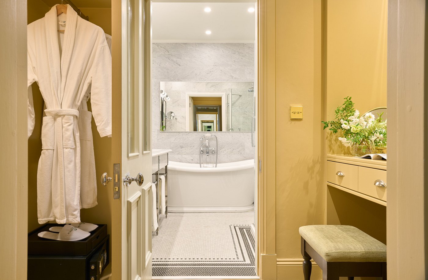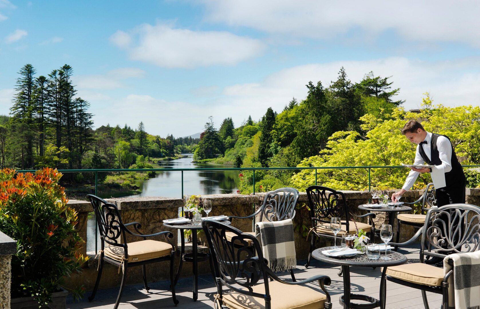 Set on a 700-acre estate in Connemara, Ballynahinch Castle Hotel is an 18th-century castle overlooking the Ballynahinch River. The property offers 48 rooms and suites, many with river or woodland views, furnished in a country-house style with modern comforts. The Owenmore Restaurant highlights seasonal Irish produce, while the Fisherman’s Pub provides a more casual setting with open fires and traditional atmosphere. Interiors feature antiques, wood-paneled rooms, and historic details that reflect the castle’s long heritage.