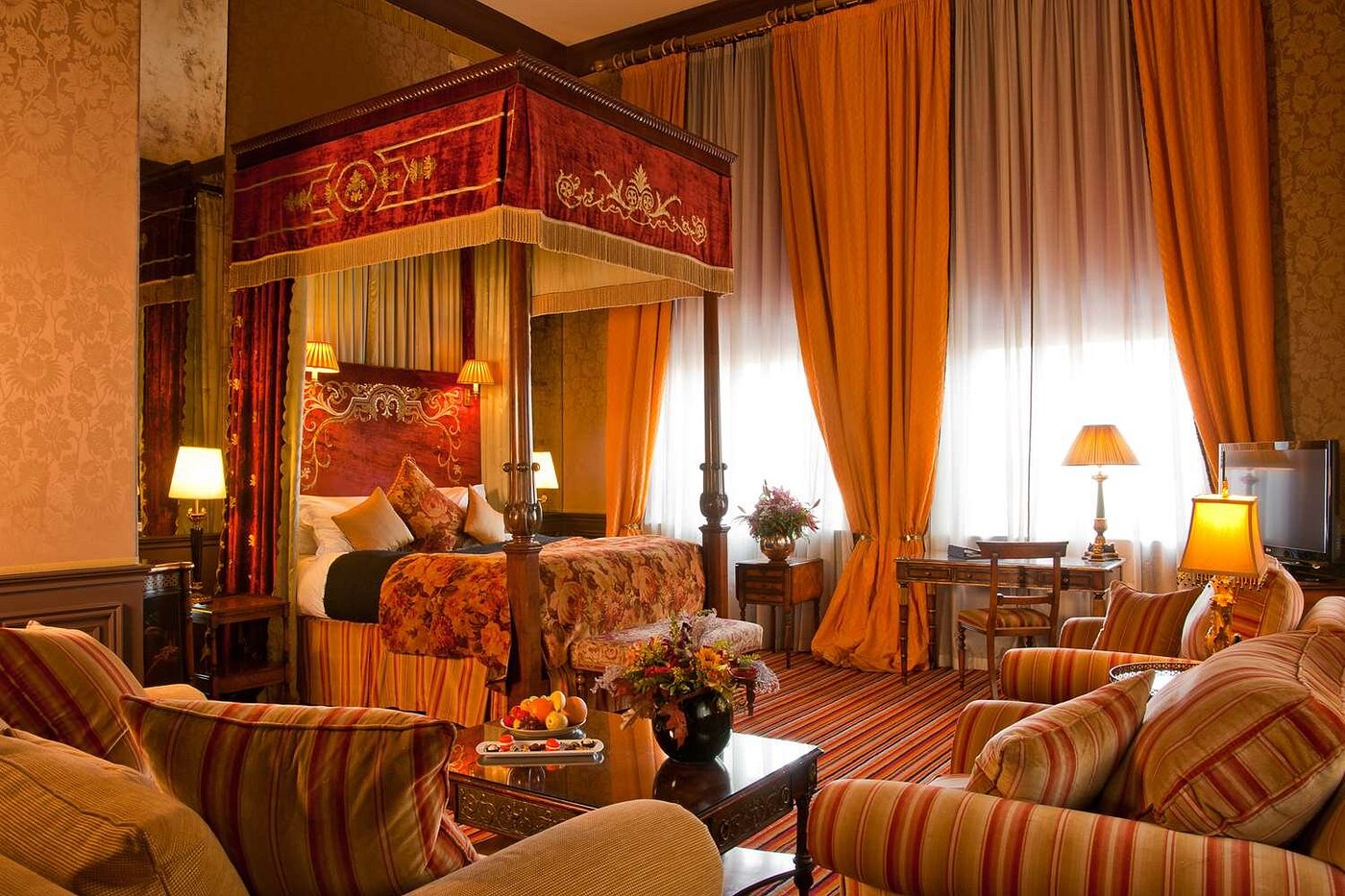Located in Belfast’s Cathedral Quarter, The Merchant Hotel occupies a former Victorian bank building and is known for its grand architecture and five-star service. The hotel offers 62 rooms and suites, blending period features with modern amenities. Dining options include a fine-dining restaurant, a brasserie, and one of the city’s most acclaimed cocktail bars, set beneath a domed ceiling. Facilities include a spa, rooftop hot tub, fitness center, and jazz bar. Its central location provides easy access to Belfast’s cultural attractions, shops, and nightlife.