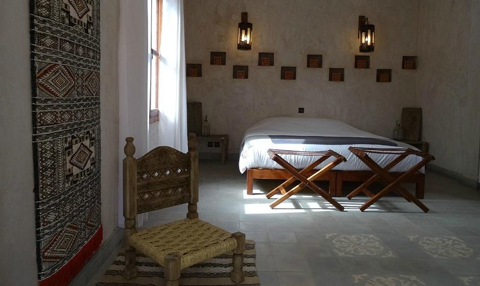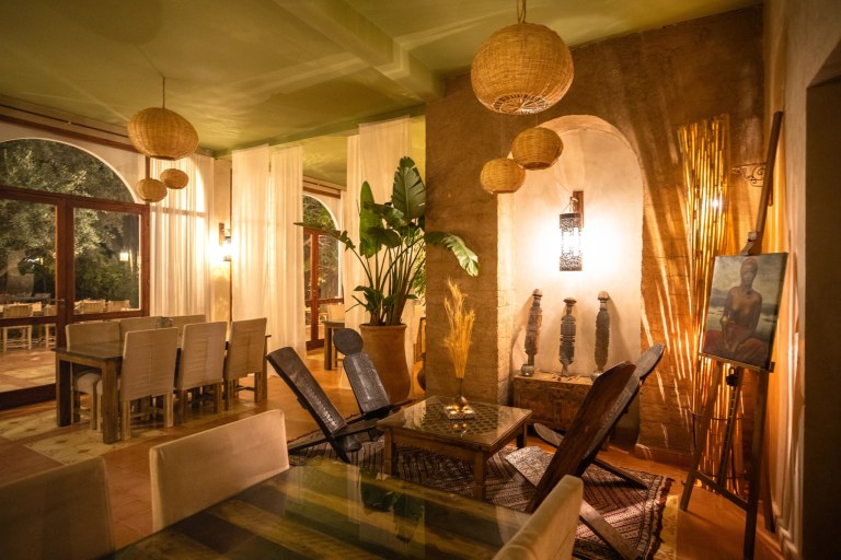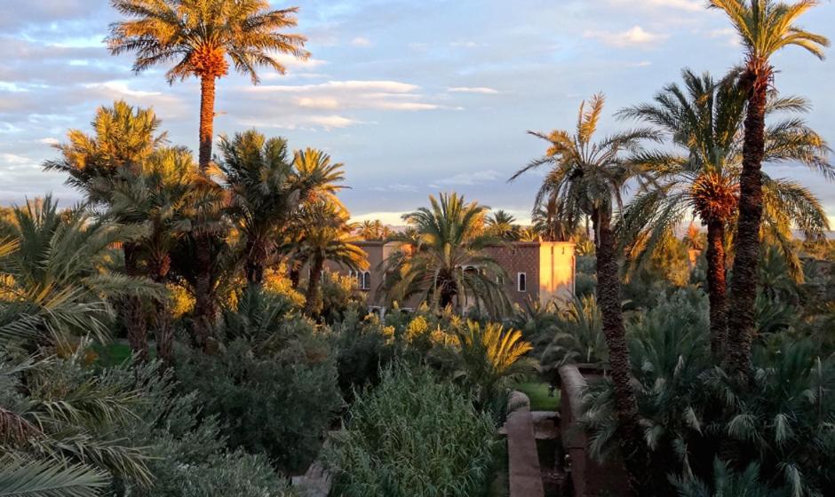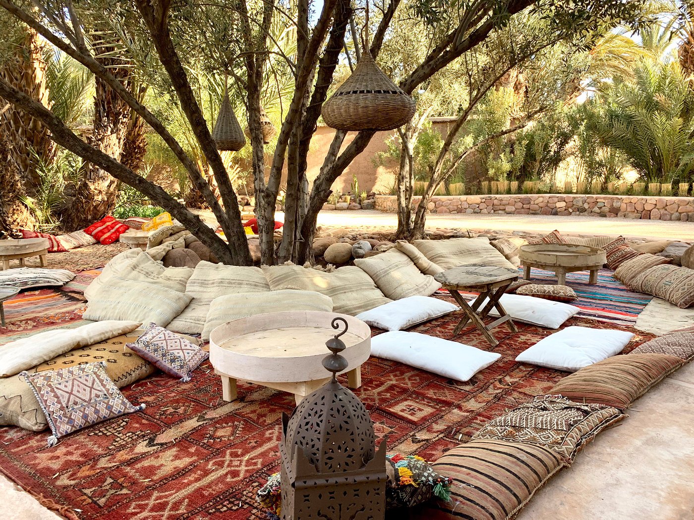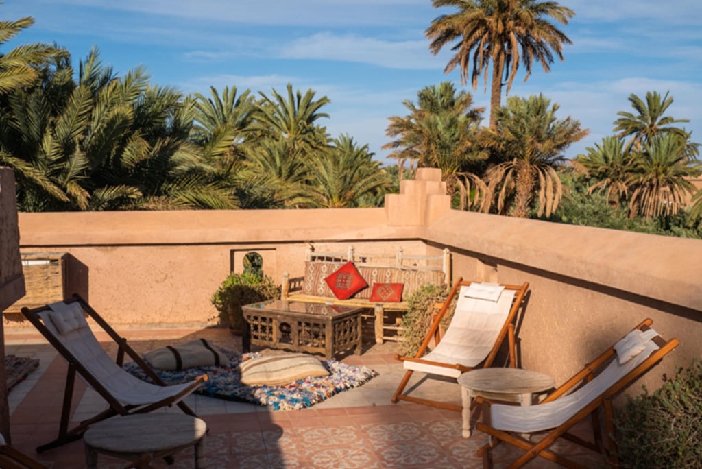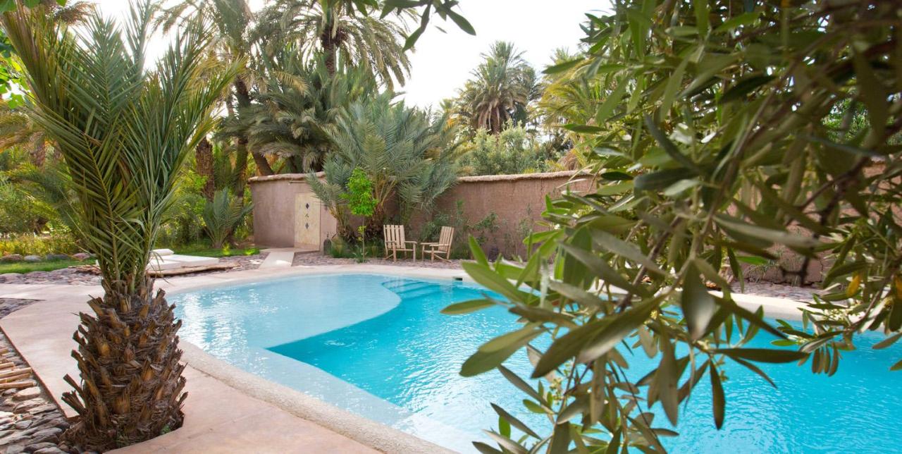This small boutique lodge is owner-operated, with exquisite attention to detail. Set in a vast, lush garden, there are multiple hidden seating areas overflowing with chairs and cushions, ideal for relaxation. A heated pool, playground and small animal sanctuary complete the huge garden area, and a gorgeous central dining room complete with floating fireplace for cool desert nights offers an ideal place to enjoy an exotic fusion of Moroccan and Mediterranean food. A rooftop terrace offers 360 degree views of the High Atlas Mountains.