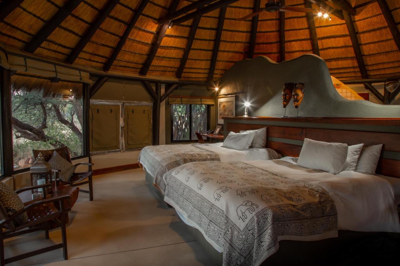Okonjima Luxury Bush Camp is situated on the edge of a vast wilderness area home to frequent leopard and cheetah sightings Each of the 8 exclusive chalets enjoy complete privacy and are a combination of earthy, ochre walls and khaki-green canvas, under a thatched roof. With an open lounge area, mini bar, two couches and coffee/tea, station these comfortable chalets have every modern comfort. A sumptuous main area, a large pool and a range a safari activities make any stay here both relaxing and exciting.
