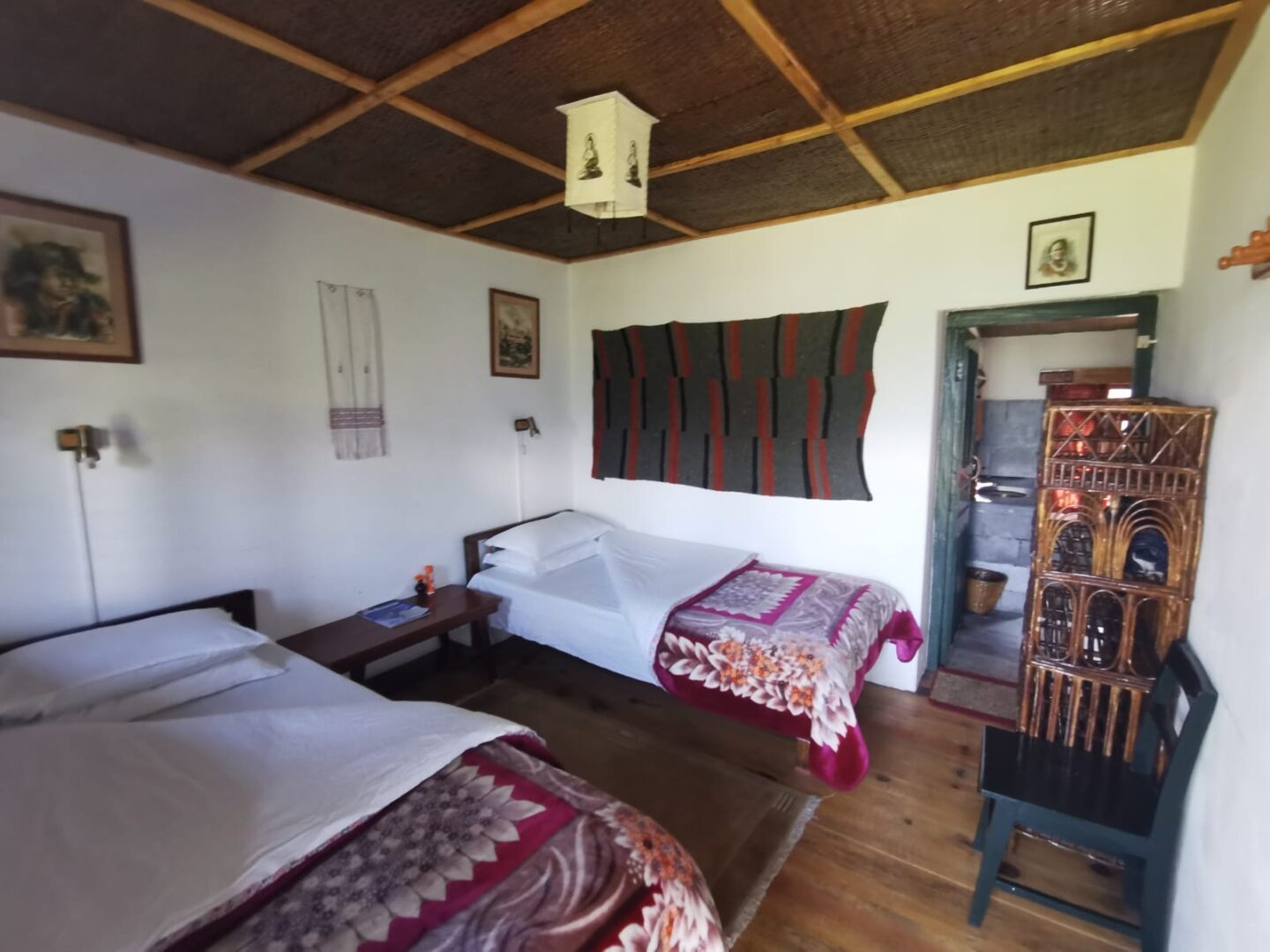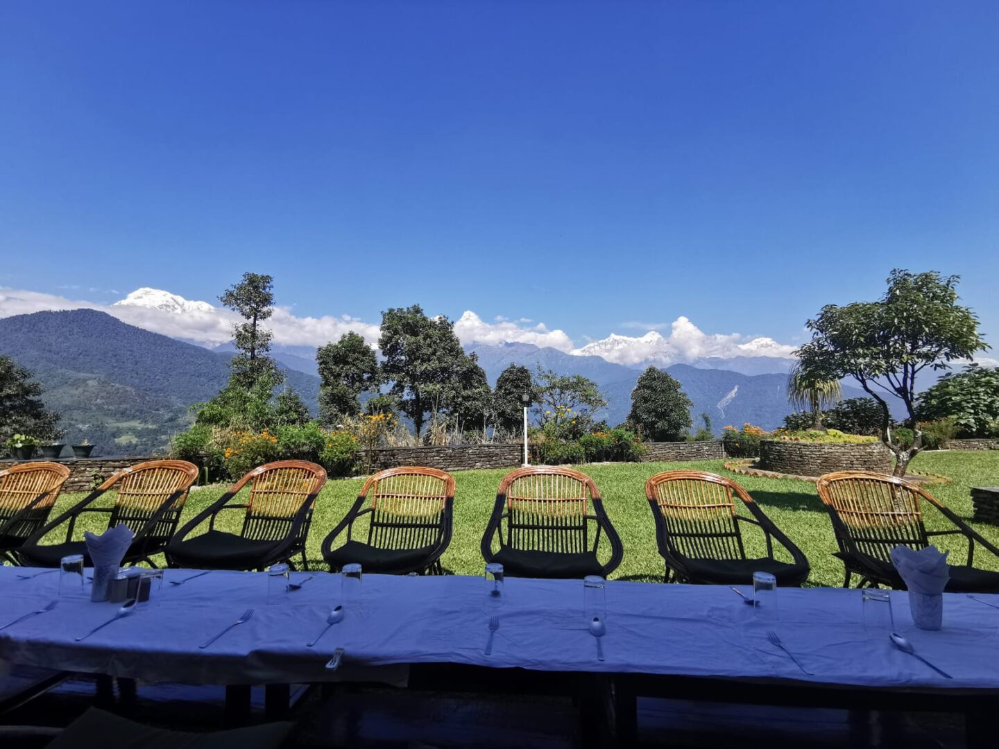 Surrounded by panoramic mountain views, and comprising of a restaurant, bar, and a beautifully landscaped garden terrace, Dhampus Lodge feels like a mountainside secret. There’s a real retreat ambiance here. Guests gather on the grassy terrace for drinks and massages as the sun sets over the mountains, then head into the cozy dining room for a fire, the fully stocked bar, and for dinner. Bright rooms set in a row face the fantastic panoramic views of the Annapurna Range. You’ll find floors adorned with Nepalese carpets, blankets and artwork. There’s hot running water in the well-designed en suite bathrooms, as well as cozy slippers and jackets for the cooler hours.