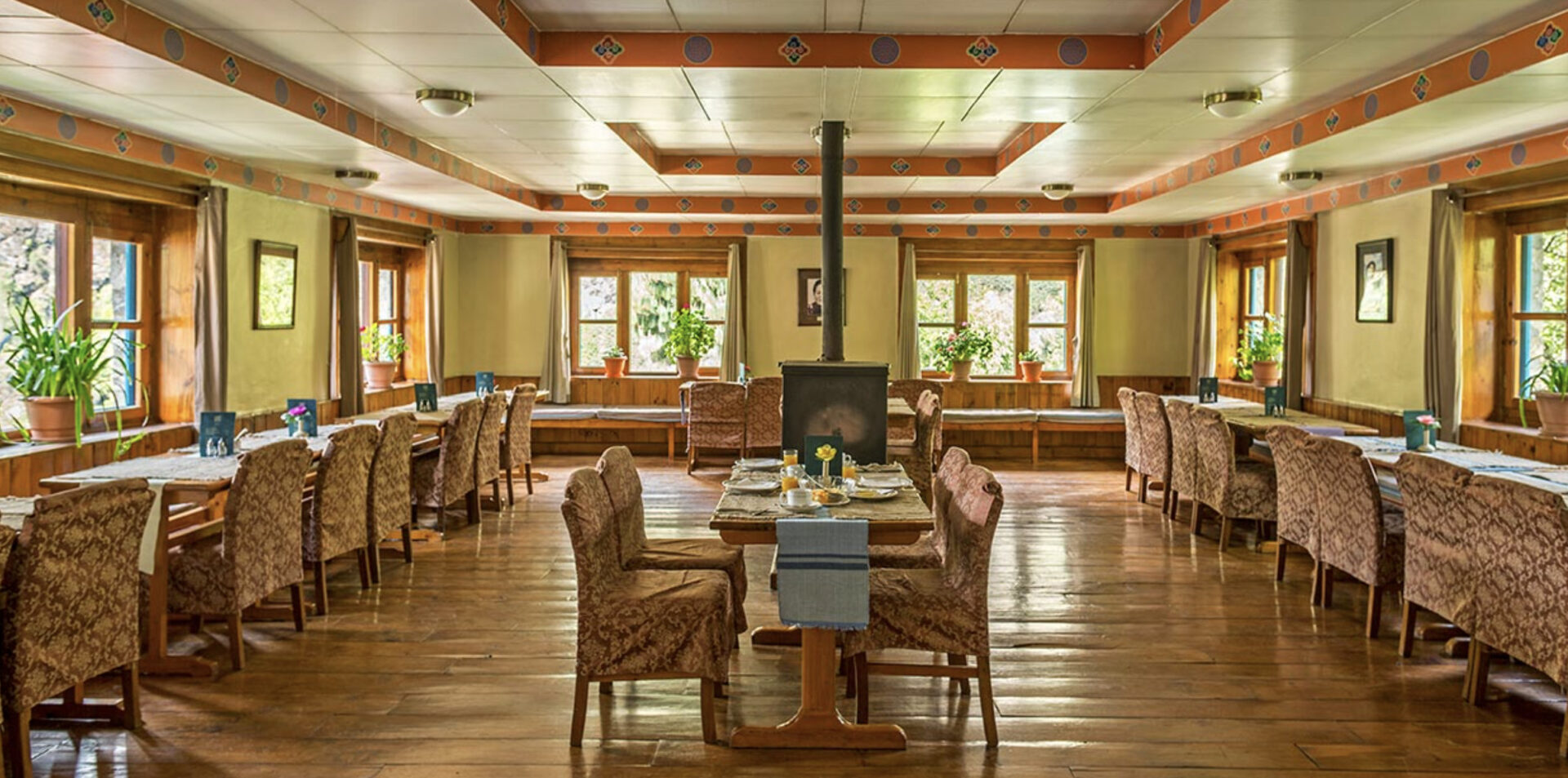 Everest Summit Lodge in Monjo lies at an altitude of 9,300ft, and is a day's hike away from Lukla. Overlooking the quaint village and the fierce Dudh Koshi River, Everest Summit Lodge Monjo is located against the striking backdrop of Thamserku Himal, rising from between the Khumbu and Hinku valley. The lodge is simple and comfortable, offering a terrace with mountain views, a cozy dining room, WiFi, and hot showers.