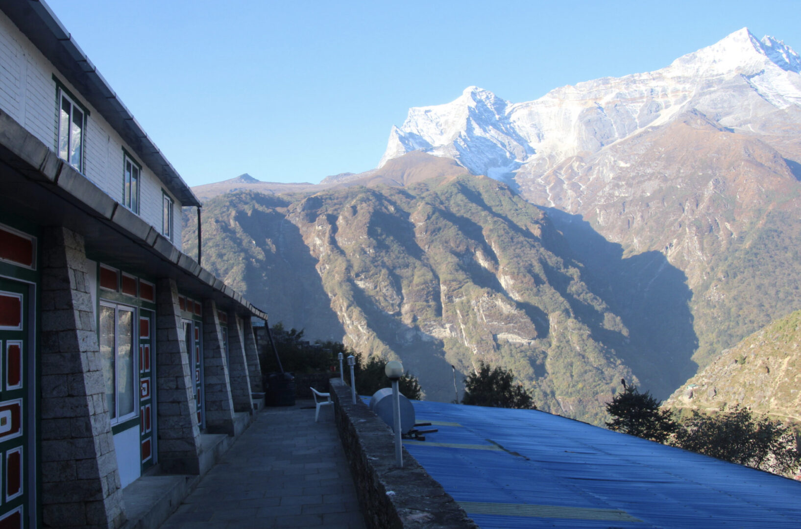 Panorama Lodge is a quaint family-owned lodge perched on top of Namche Bazaar, and was established in 1989. The lodge boasts a cozy central fireplace, WiFi, hot showers, and hearty Nepali and Western meals served at the onsite restaurant. The rooms are basic but comfortable, outfitted with large windows and toasty heated blankets.