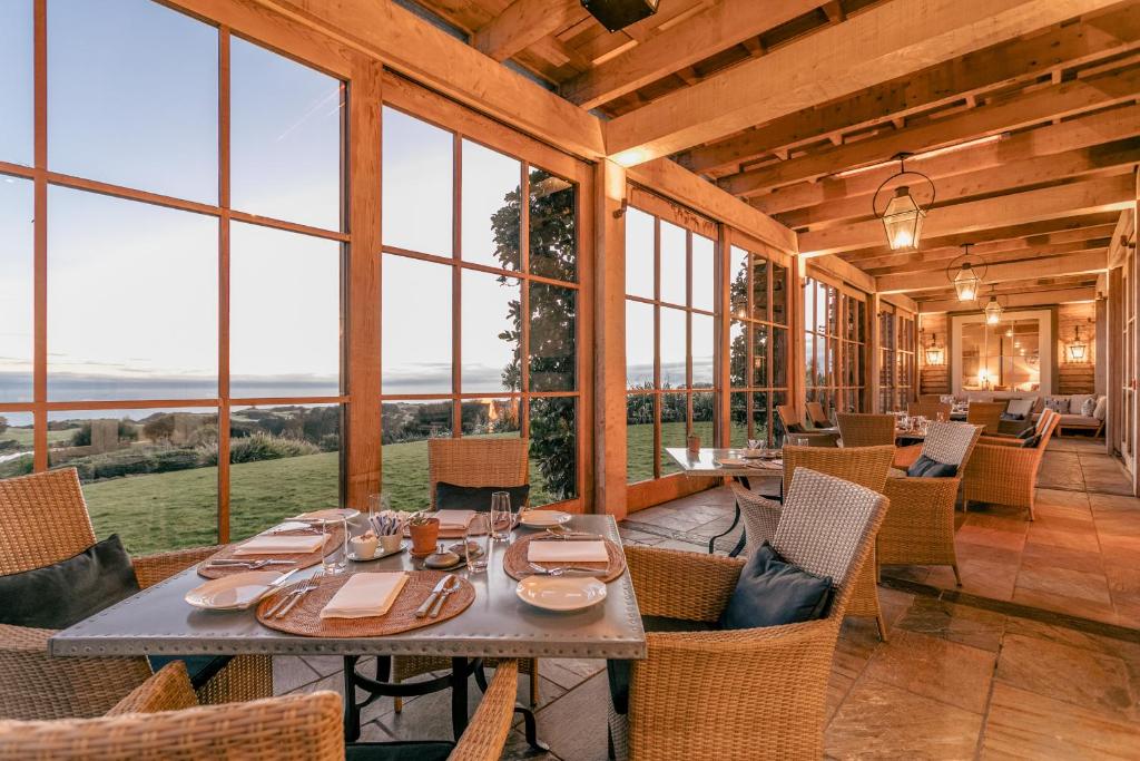 Rosewood Cape Kidnappers is a luxury lodge set on a 6,000-acre working farm and coastal sanctuary in Hawke’s Bay, perched high above the Pacific Ocean. The property features elegant suites and villas with open fireplaces, walk-in wardrobes, and panoramic views over rolling hills or dramatic cliffs. Guests can enjoy farm-to-table dining, a spa, infinity pool, and access to the award-winning Cape Kidnappers Golf Course.