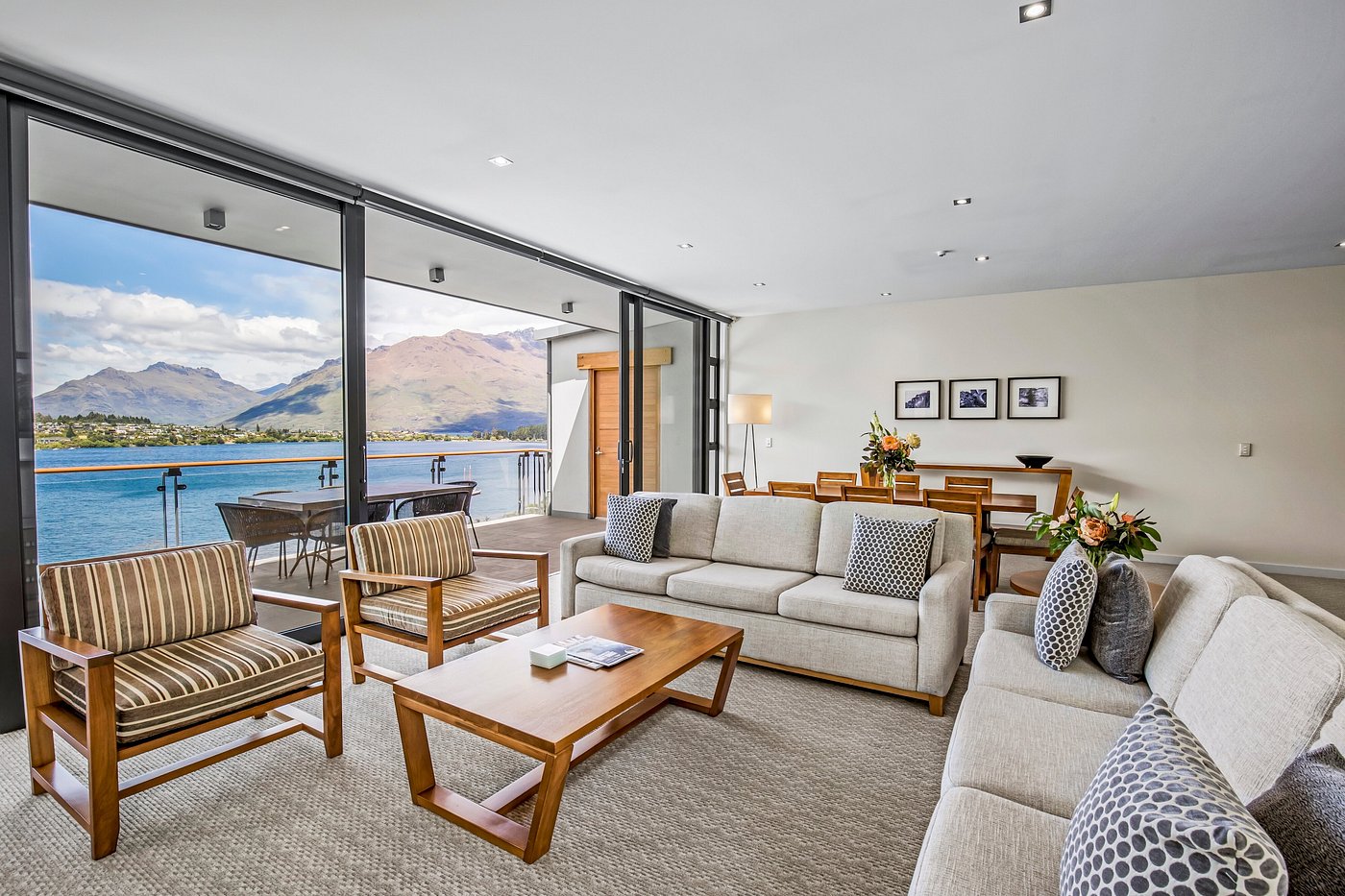 The Rees Hotel Queenstown is a five-star lakeside property set on the shores of Lake Wakatipu, offering a quieter, more residential feel just a short drive from the town center. Accommodations range from spacious hotel rooms to full-service apartments and lakeside residences, many with private balconies and floor-to-ceiling windows framing panoramic views of the lake and Remarkables mountain range. The hotel is known for its extensive wine cellar, fine dining at True South Dining Room, and thoughtful touches like a courtesy shuttle into town, private jetty, and curated art collection. It’s a refined, peaceful retreat that balances independence and high-end service.