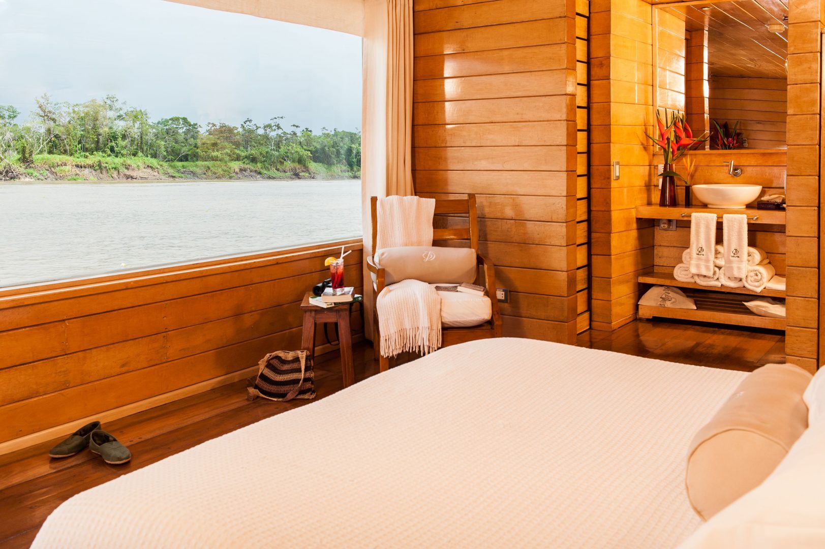 The Delfin II, a Relais & Chateaux vessel, offers upscale Amazon River cruises as part of the Delfin Amazon Cruises fleet. The 120-foot ship has fourteen guest suites with a maximum capacity of 28 passengers. Like its sister ships the Delfin I and Delfin III, it offers an open observation deck, lounge and guest library, a bar, and a dining area featuring gourmet Peruvian cuisine. The Delfin II also offers a hammock sun deck where guests can relax and take in the beautiful scenery.