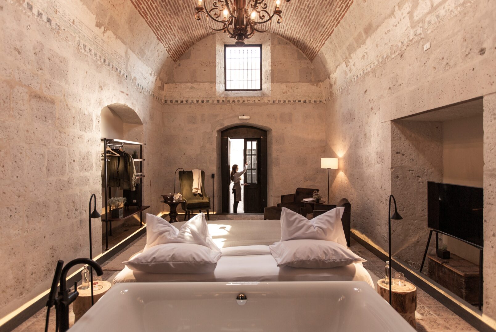 Located in the historic center of Arequipa, the Hotel Cirqa is set in the remains of the back patio of a 1583 monastery and is nearly as old as the city itself. This 11-room hotel is known for its architectural interior, partly constructed of volcanic rock, and high-quality service. The property features a garden, a terrace, and a restaurant offering dishes inspired by ingredients native to the region.