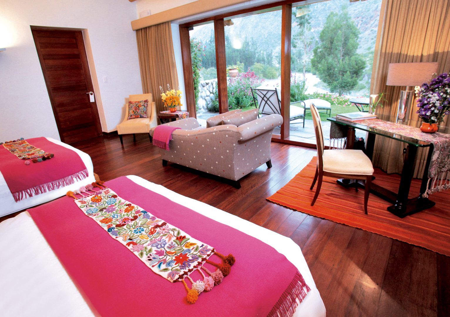 The Belmond Rio Sagrado is one of the top 5-star options in the Sacred Valley. Set on the banks of the Urubamba River, rooms feature luxurious amenities such as heated wooden floors in the bathrooms and a large private terrace with views of the surrounding mountains. The hotel also features a swimming pool, ample gardens, spa, and two restaurants.