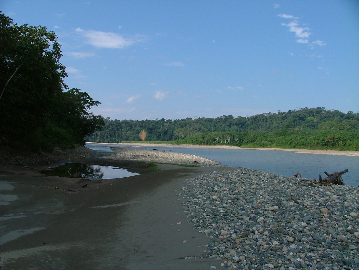 The Pantiacolla Lodge enjoys an ideal location, in the heart of a forest overlooking the Upper Madre de Dios River. This rainforest lodge sits at the Manu foothills at the base of the Pantiacolla Mountains. Each of the 14 bungalows provide accommodation for two people. Paths connect the bungalows to showers and flush toilets. The lodge also has a dining area and bar.