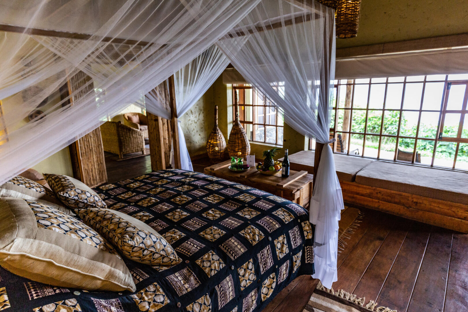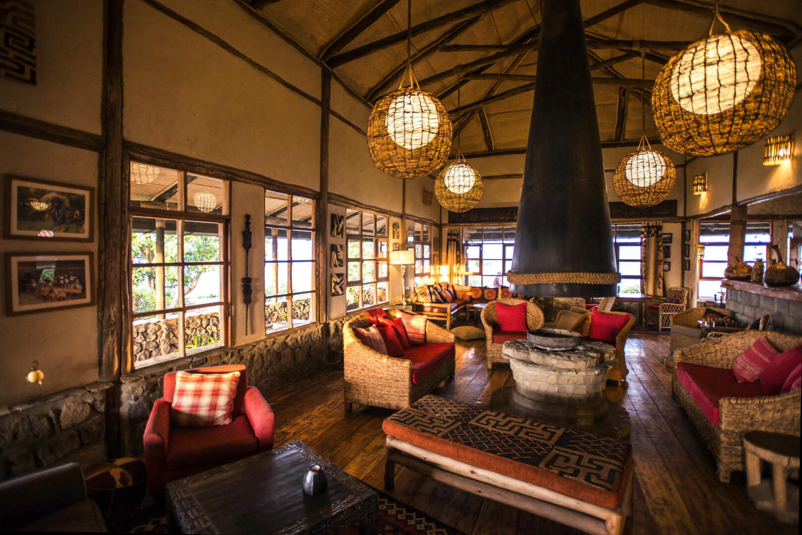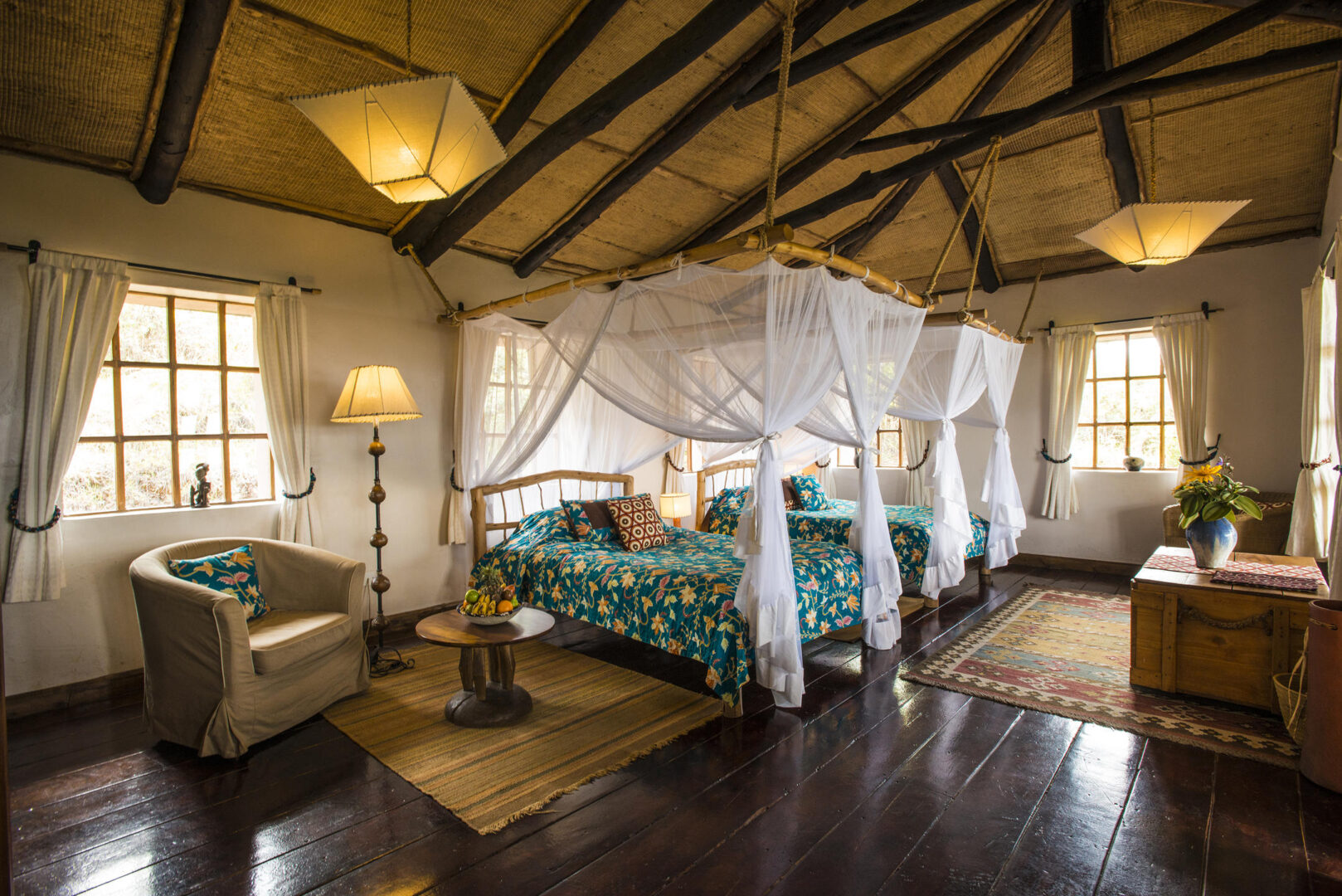 The magnificent Virunga Lodge is one of the premier luxury gorilla lodges in Rwanda. Perched high on a ridge with stunning views of the Virunga Volcanoes, the Musanze valley to the west and Lake Bulera and Ruhondo to the east, this lodge is ideal for any gorilla trek. Uniquely decorated rooms in the Rwandese style, fantastic food and exceptional and personalised service are all on offer here.