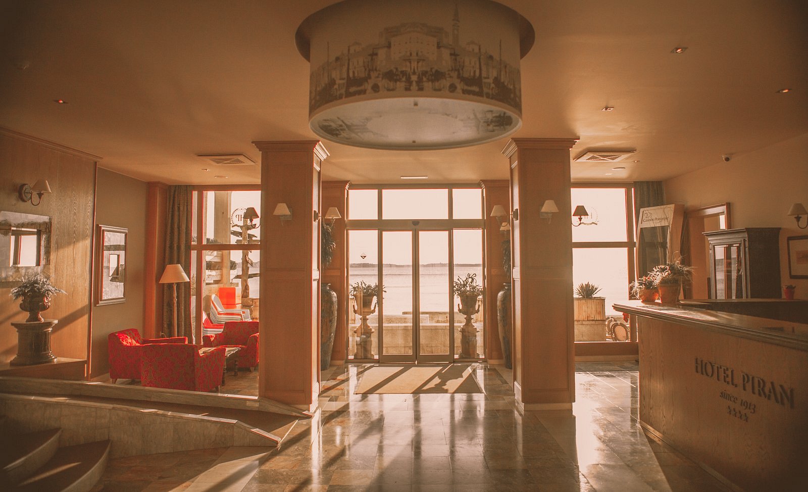 Located just steps away from the ocean, Hotel Piran is a comfortable 4-star hotel with over 100 years of history in the seaside Slovenian village of Piran. Its 103 rooms offer amenities such as air-conditioning and Wi-Fi, as well as private balconies. The onsite restaurant serves tasty Mediterranean cuisine, and other hotel facilities include a bar, spa, and rooftop lounge with panoramic sea views.