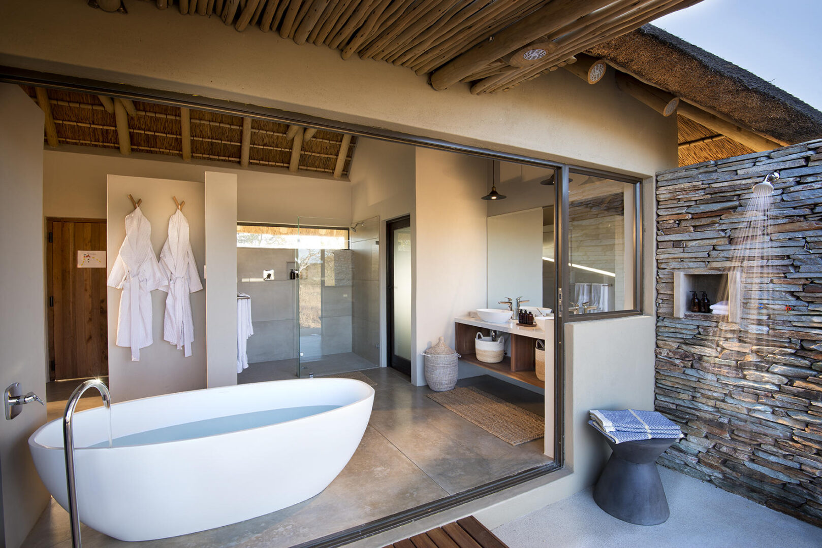 Set in the heart of Timbavati Private Nature Reserve, adjacent to Kruger National Park, RockFig Safari Lodge is well situated for forays into the African wilds. The lodge comprises 6 chalet-style suites with private verandas, indoor and outdoor showers, and a bathtub with a view out to nature. The property offers a restaurant and bar, fireplace lounge, outdoor fire pit lounge, and a swimming pool overlooking the waterhole that attracts wildlife right to your doorstep.