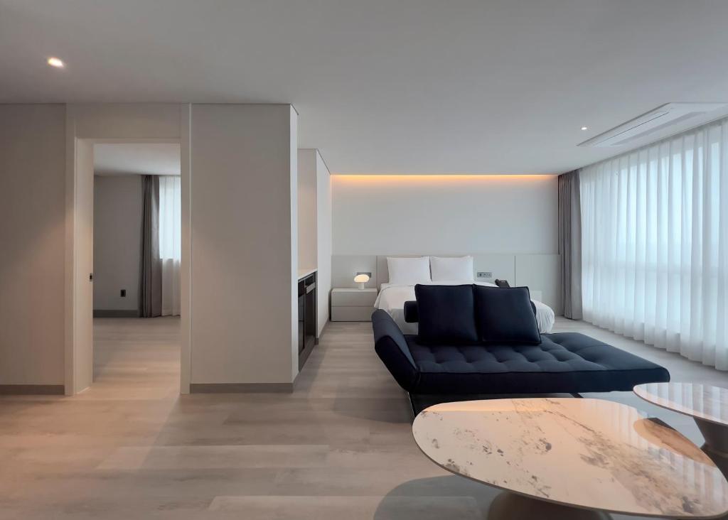 Ocean Suites Jeju is located along the Jeju City waterfront, offering direct views of the sea and easy access to Jeju’s airport and downtown attractions. The hotel features clean, modern rooms equipped with free Wi-Fi, flat-screen TVs, and basic kitchenettes in select rooms. Facilities include a buffet restaurant, fitness center, spa, and cafe. The property is within walking distance of Dongmun Market and Tapdong Promenade, making it a convenient base for exploring both the cultural and natural highlights of northern Jeju Island.