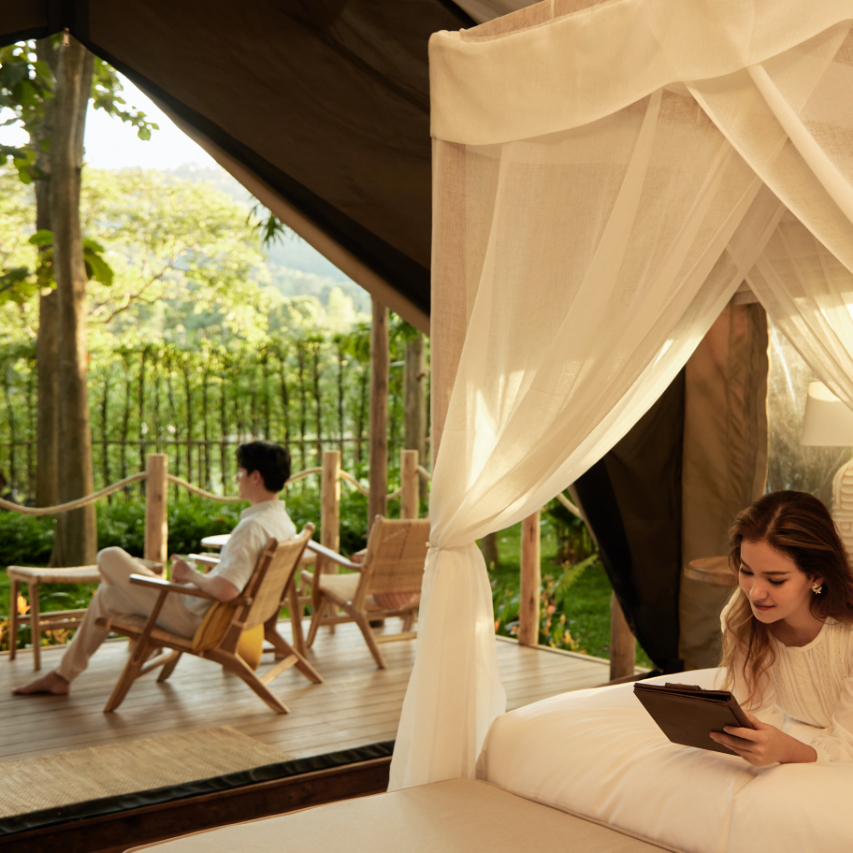 Chiang Rai's gorgeous new accommodation Visama Lodge Mae Chan offers a unique "glamping" experience where modern comforts blend seamlessly with the surrounding natural beauty. Each spacious tent is meticulously designed, offering you an unparalleled level of comfort and tranquility. Fall asleep under a canopy of stars, surrounded by the sounds of nature, and wake up to breathtaking views of the mountains. Visama Lodge Mae Chan not only boasts exquisite service, but also has a spacious swimming pool, spa and wellness center, a craft cocktail bar, and a restaurant featuring Thai and international cuisines prepared with locally sourced organic ingredients.