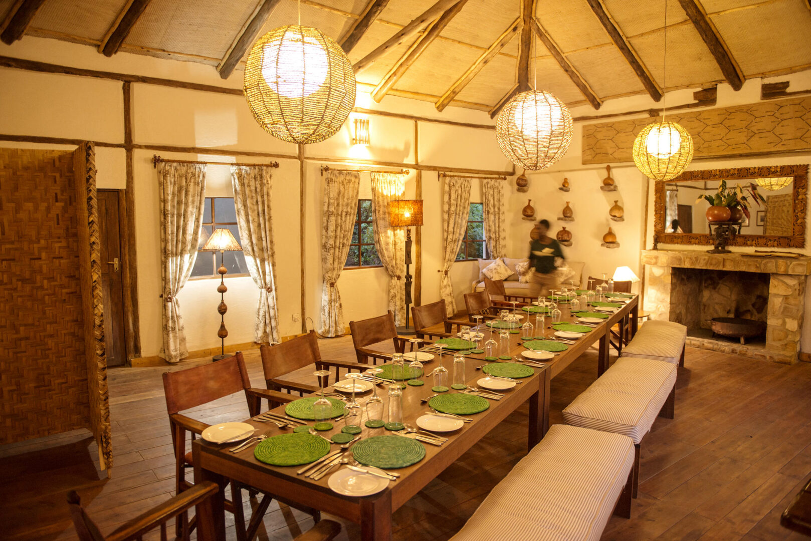 Featuring a sumptuous guest lounge and dining area that bring the feel of the forest into the stylish interiors, the main living area has a central fireplace which acts as a focal point for guests to relax and discuss their gorilla tracking experience. A beautifully designed outdoor terrace gives sweeping views of the impenetrable forest and is a great place to spot the monkeys and birds hidden in the foliage.