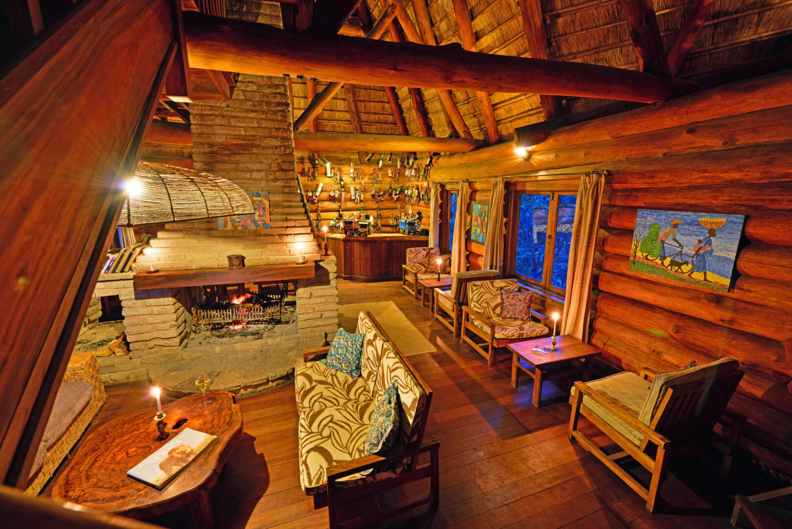 Each spacious cottage is beautifully appointed with a choice of twin or double beds made up with Egyptian cotton bedlinen and soft feather pillows. Two family cottages feature a mezzanine level with extra sleeping space for children. Once inside, an indoor sitting area leads out to a private deck where one can enjoy morning tea or a sundowner and views over the lake and the Mountains of the Moon beyond. The en suite bathrooms boast marble countertop basins set atop beautifully crafted Elgon Olive pedestals, claw footed freestanding baths and glass walled showers. Hot water and lighting in the cottages are solar powered, providing all the comforts of home in a most extraordinary setting.