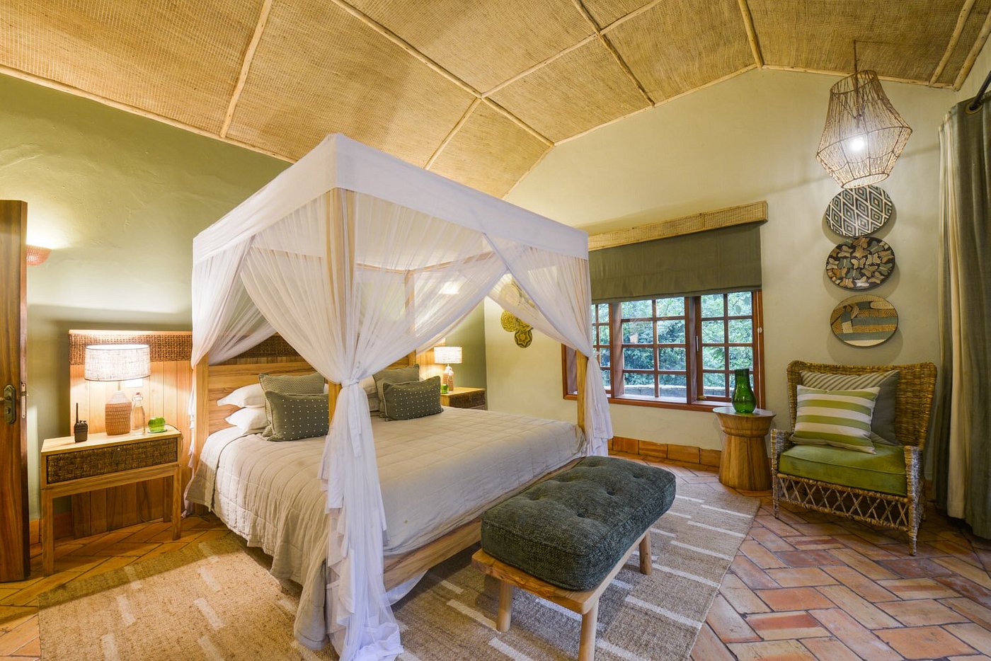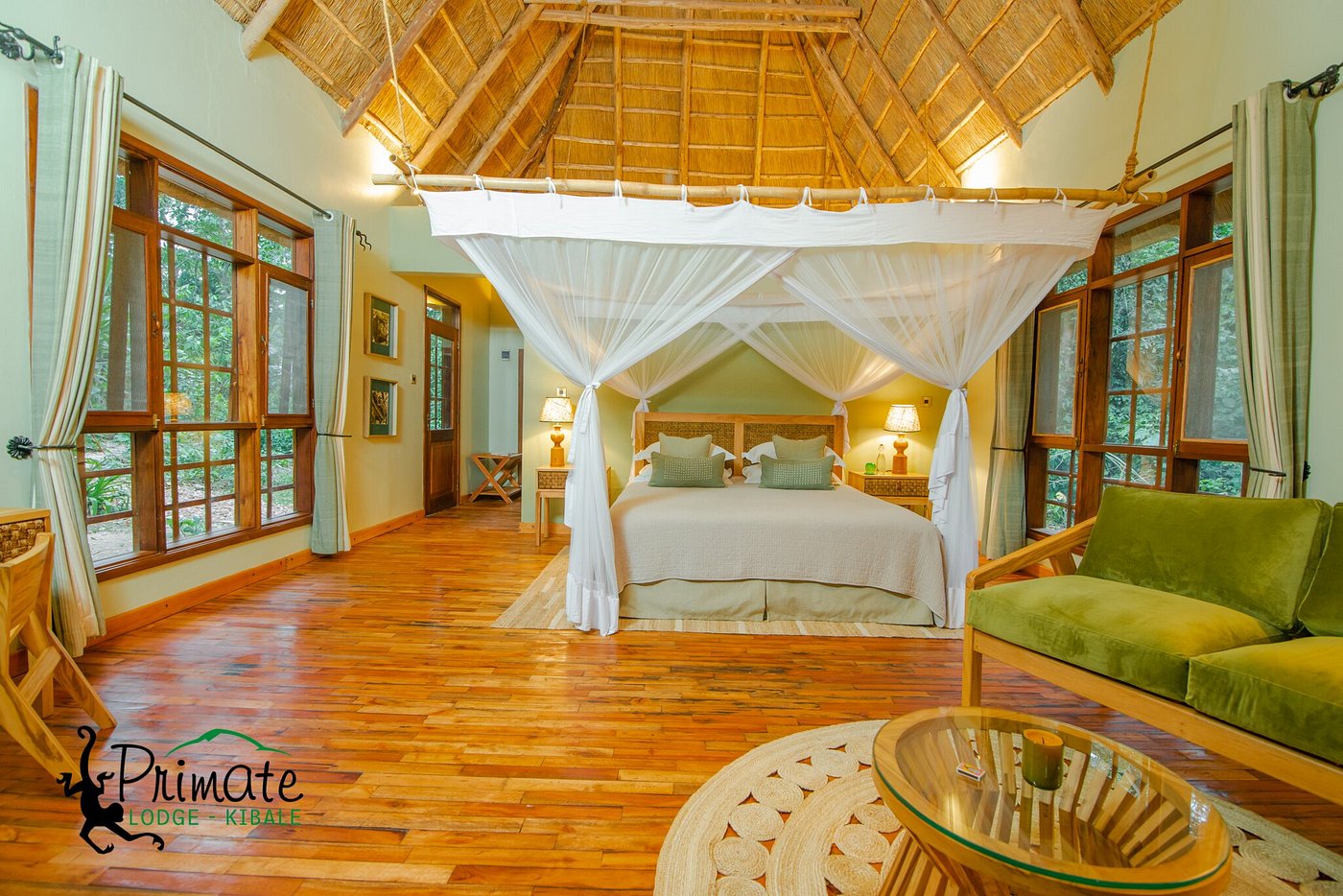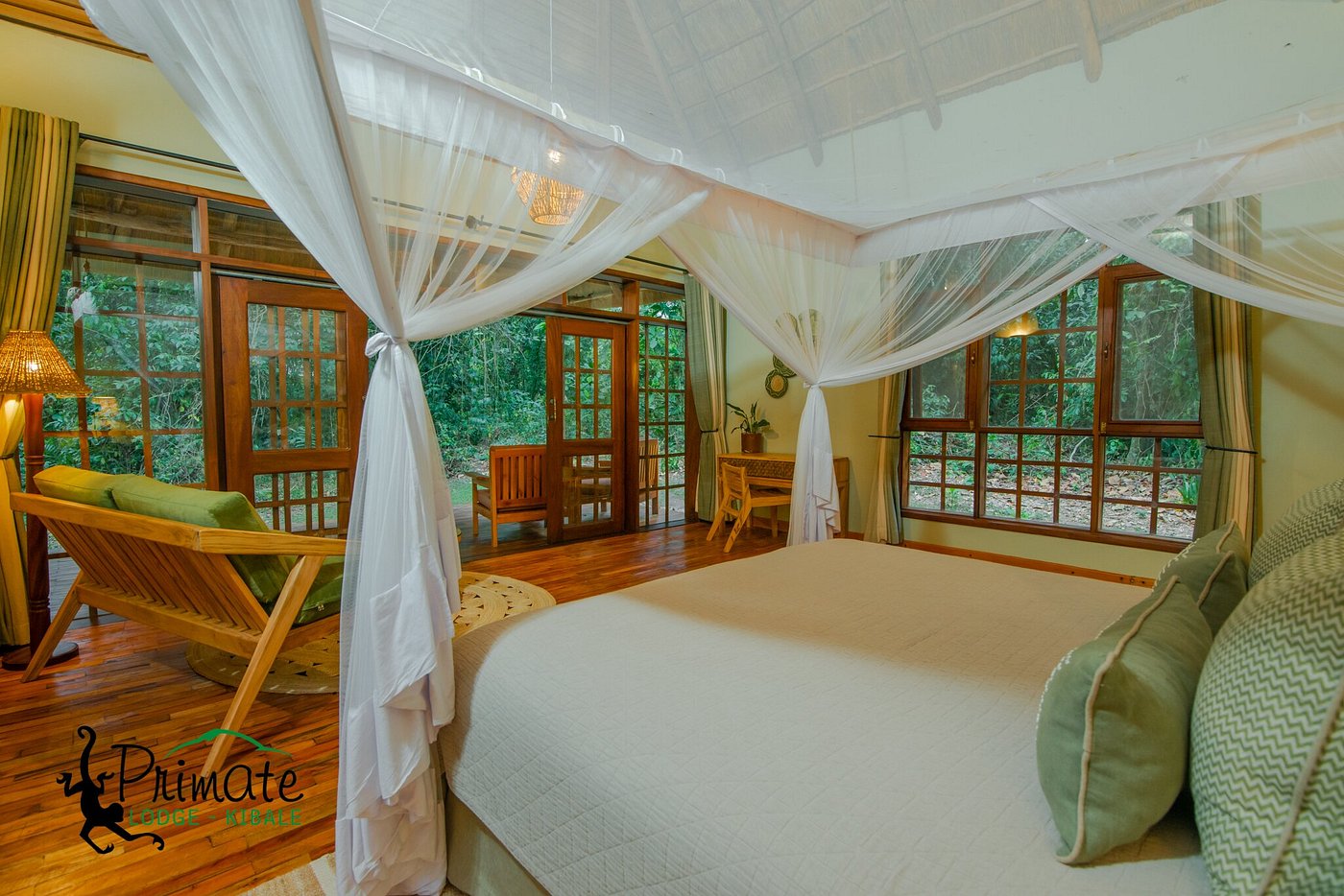 Primate Lodge is tucked deep inside Kibale's rainforest, and is perfectly situated is a prime starting point for chimpanzee tracking. Nine spacious and en-suite luxury cottages are spaced apart for maximum privacy and a natural ‘living in nature’ feel, completely surrounded by the dense forest. Each room has a sitting area, a reading table, and an adjoining large veranda. Other lodge amenities include a massage area, a spacious dining terrace, a well-stocked bar, complimentary room service, a secluded lounge area with a small library, an evening campfire, free laundry service, and WiFi in communal areas.