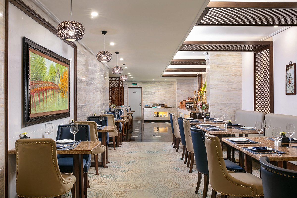 Located on Hang Trong Street, in the heart of the bustling Old Quarter, you'll be steps away from Hoan Kiem Lake, Hanoi Cathedral, and local markets. Choose from rooms and suites offering classic decor, modern furnishings, and stunning city views. Unwind by the rooftop pool or at the on-site spa. For dining options, Thang Long Signature restaurant offers a wide range of Vietnamese and Western cuisine that promises to impress your taste buds at the first bite. Guests can also chill out at the O'Sky Bar, taking a sip of signature cocktails while enjoying a mesmerizing view of the lake.