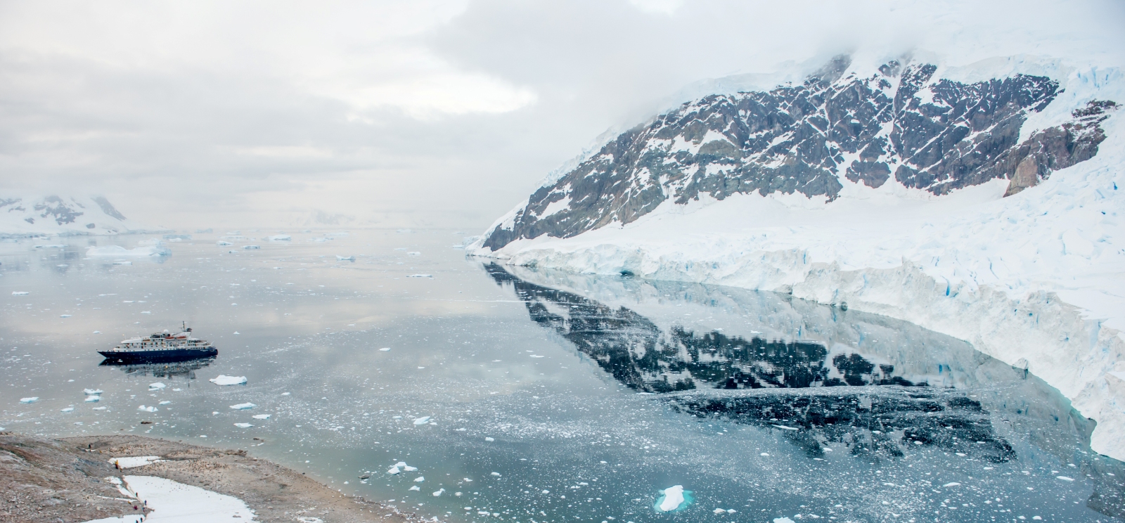 Antarctica_Cruise_Ship-near-shore-with-ice-and-mountains