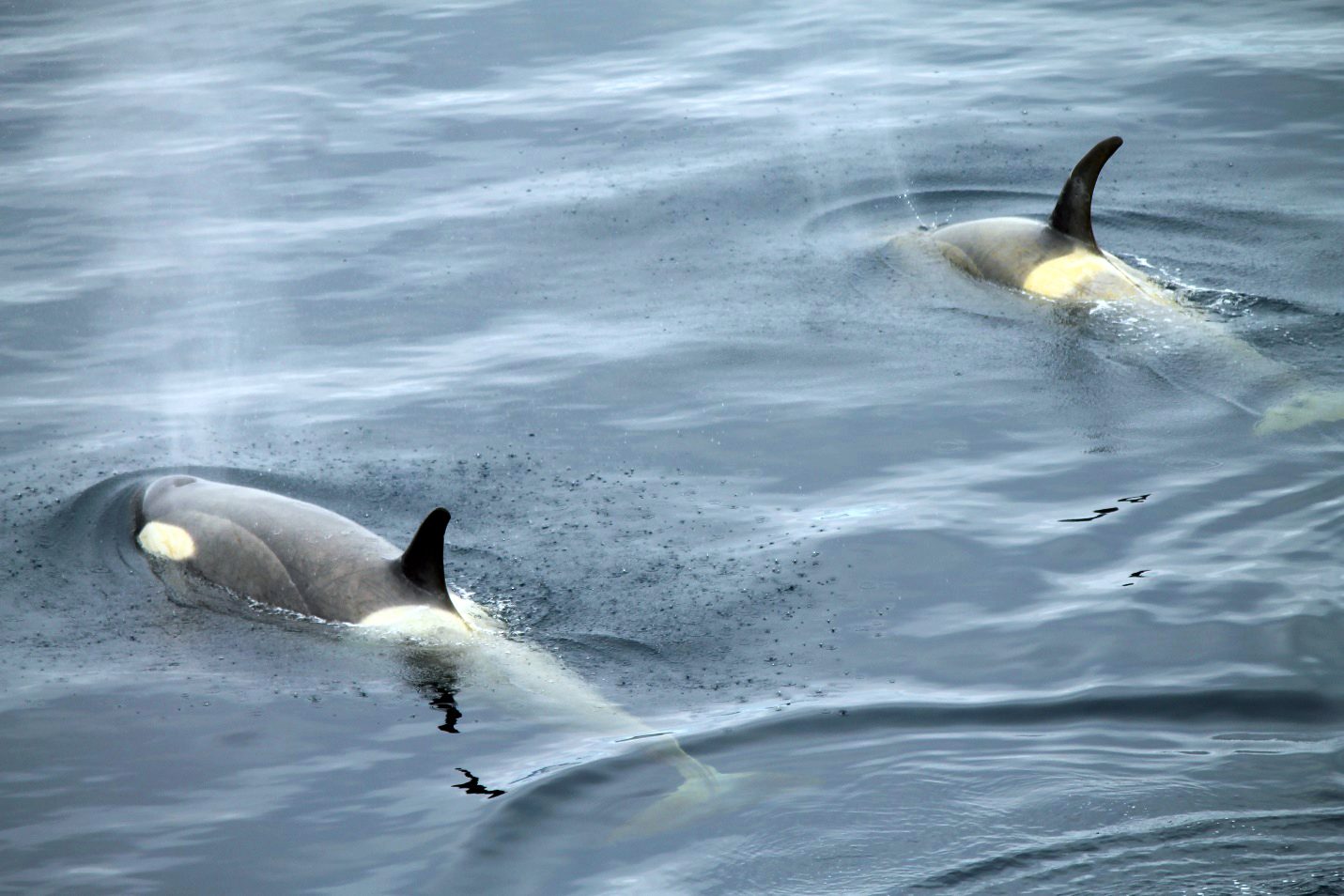 Orcas swimming by the ship